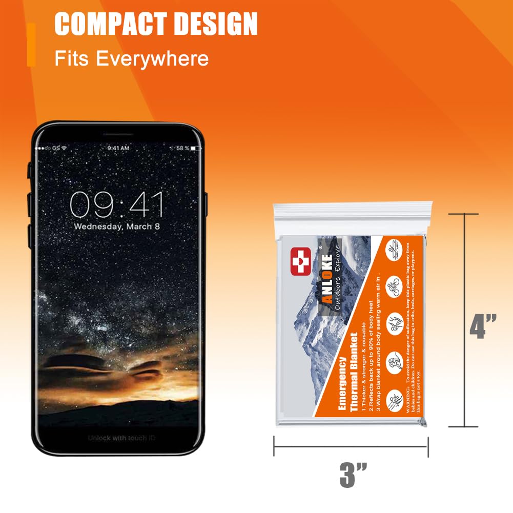 ★LIGHTWEIGHT & EASY TO CARRY★--Individual package size: 6" x 4", weighs about 2 ounces . Each emergency blanket is easy to carry with you wherever you go. you can put it in your backpack and pocket easily without stress. Our thermal blankets are a must-have for camping, trail running, marathons, 48hr/72hr/30 day go bags, tactical gear preppers, earthquake survival kits, and travel first aid kits.