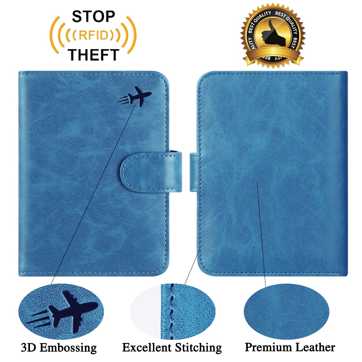 【RFID BLOCKING】 - Our Passport Cover is equipped with advanced RFID BLOCKING SECURE TECHNOLOGY, a stylish metal composite, engineered specifically to block 13.56 MHz or higher RFID signals, such as ID card, Credit card, Debit card, Driver license and keep your personal information securely everywhere.