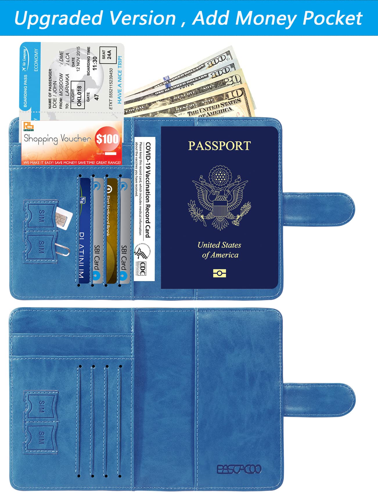 【HIGH-QUALITY SYNTHETIC LEATHER】 - The passport holder with vaccine card slot is designed specially for passport and vaccine card. Passport cover made from premium high-quality ECO-Friendly synthetic leather, touch soft and comfortably base on more sponge added.