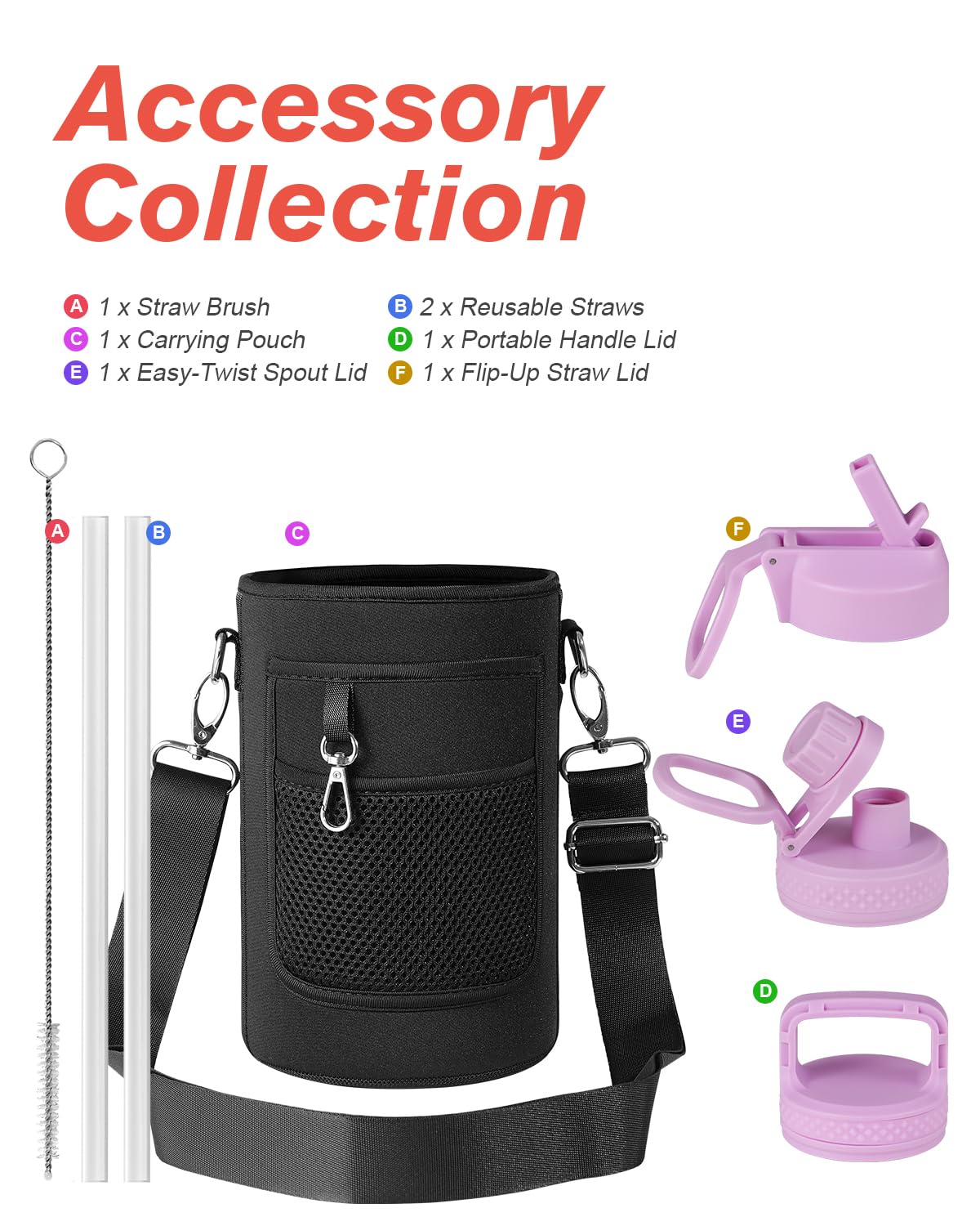 Flexible Drinking On-the-Go: This water jug comes with 3 different lids. The screw-on lid with flip-up handle is for easy ice refilling with superior portability; spout lid makes it convenient to drink hot liquid and straw lid for sipping cold