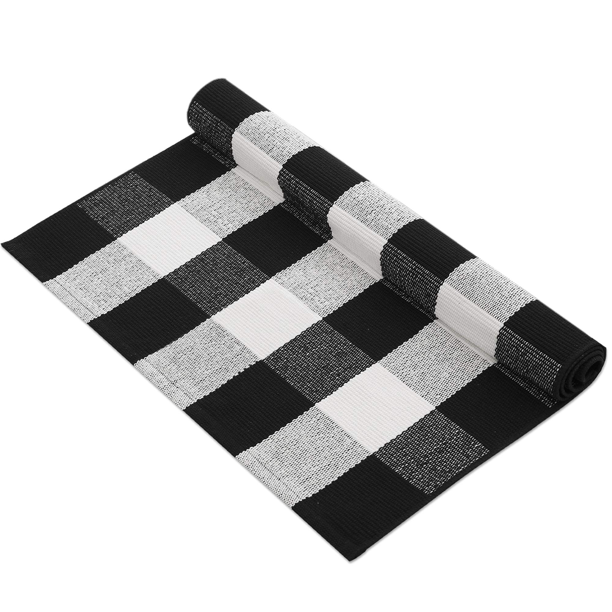 ⭐【 SOFT & DURABLE DESIGN 】: MUBIN outdoor rug is made of high-quality cotton that is soft and comfortable to touch. Exquisite Hand-woven door mat is made with classic black, white check pattern, environmental protection fabric.