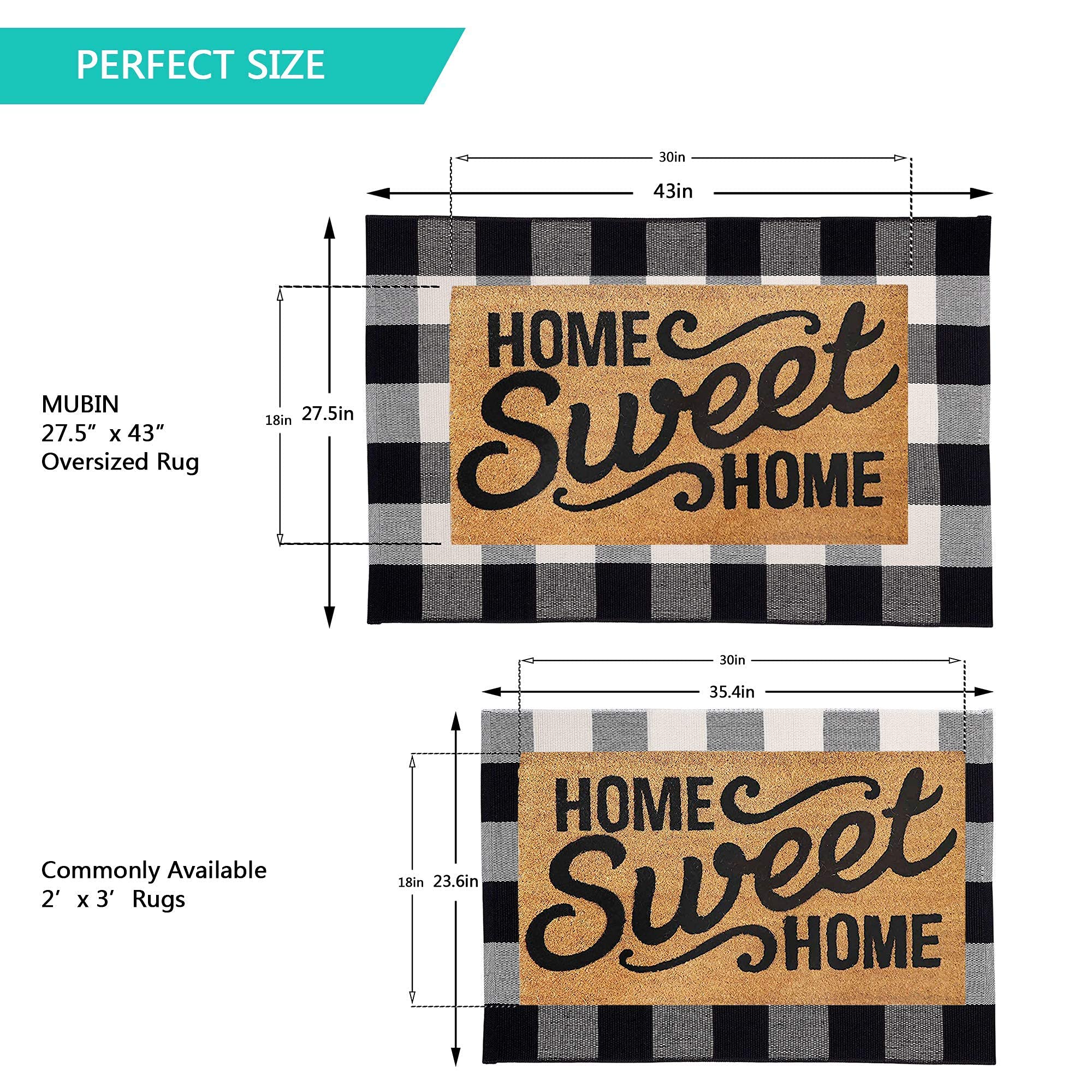 ⭐【PERFECT SIZE for HELLO DOORMAT】: MUBIN buffalo plaid rugs are wider and longer than most rugs on Amazon, thanks to 27.5" x 43" ideal size. Perfect fit 18" x 30" hello door mat.Adding a different brilliance to your home!