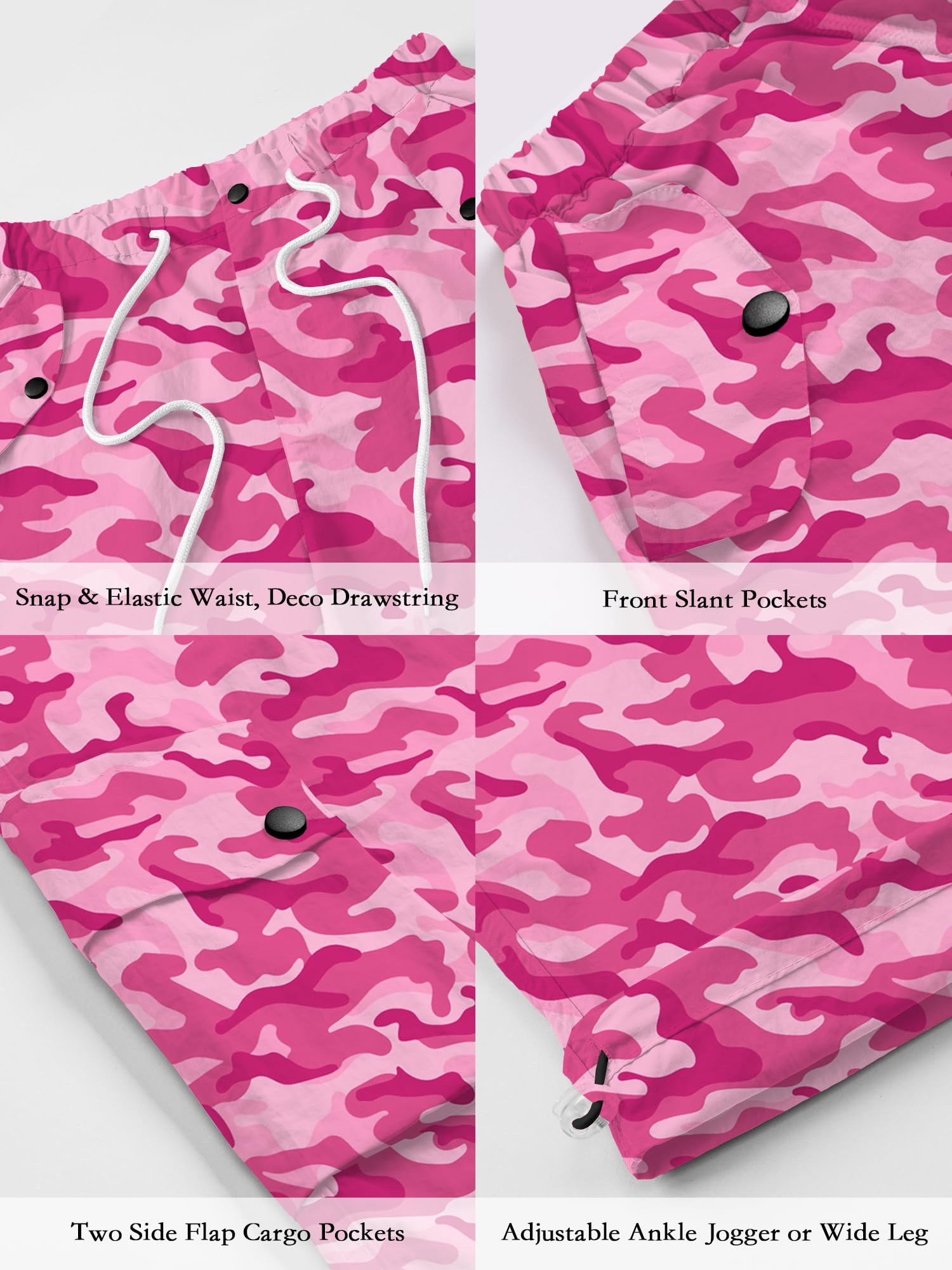 Design:Y2K cargo pants featuring a baggy oversized silhouette with color-matched elastic drawstring waist, adjustable ankle drawstring cuffs, ankle-length cut, and 4 functional cargo pockets for essentials storage.