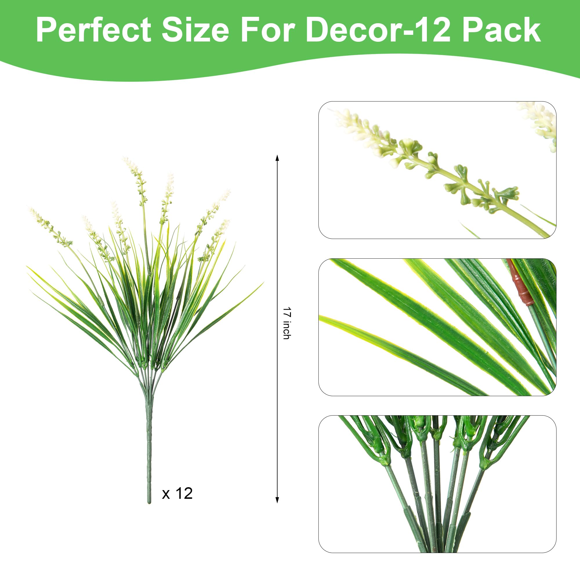 Adjustable Fake Monkey Grass: There are 12 Bundles of grass in this pack, each bundle is about 17“ and each artificial grass has 7 branches with dense leaves. The fake greenery stems can be disassembled and adjusted in shape at will, enjoy the hands-on process of beautifying these monkey grasses