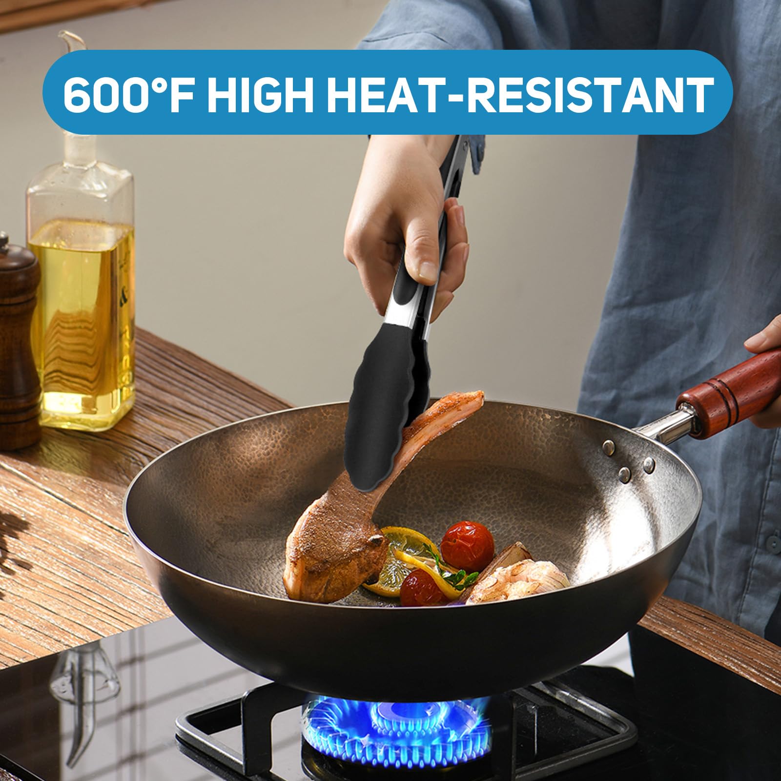 Premium Materials: EEKEDO kitchen tongs are constructed with food-grade stainless steel and silicone. Carbon free.Thickened stainless steel makes it stronger and more durable.It is convenient and safe to your cooking.