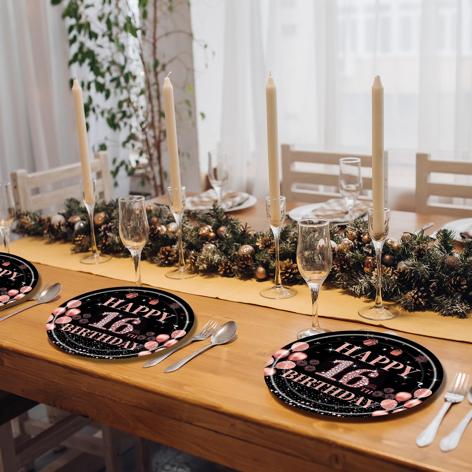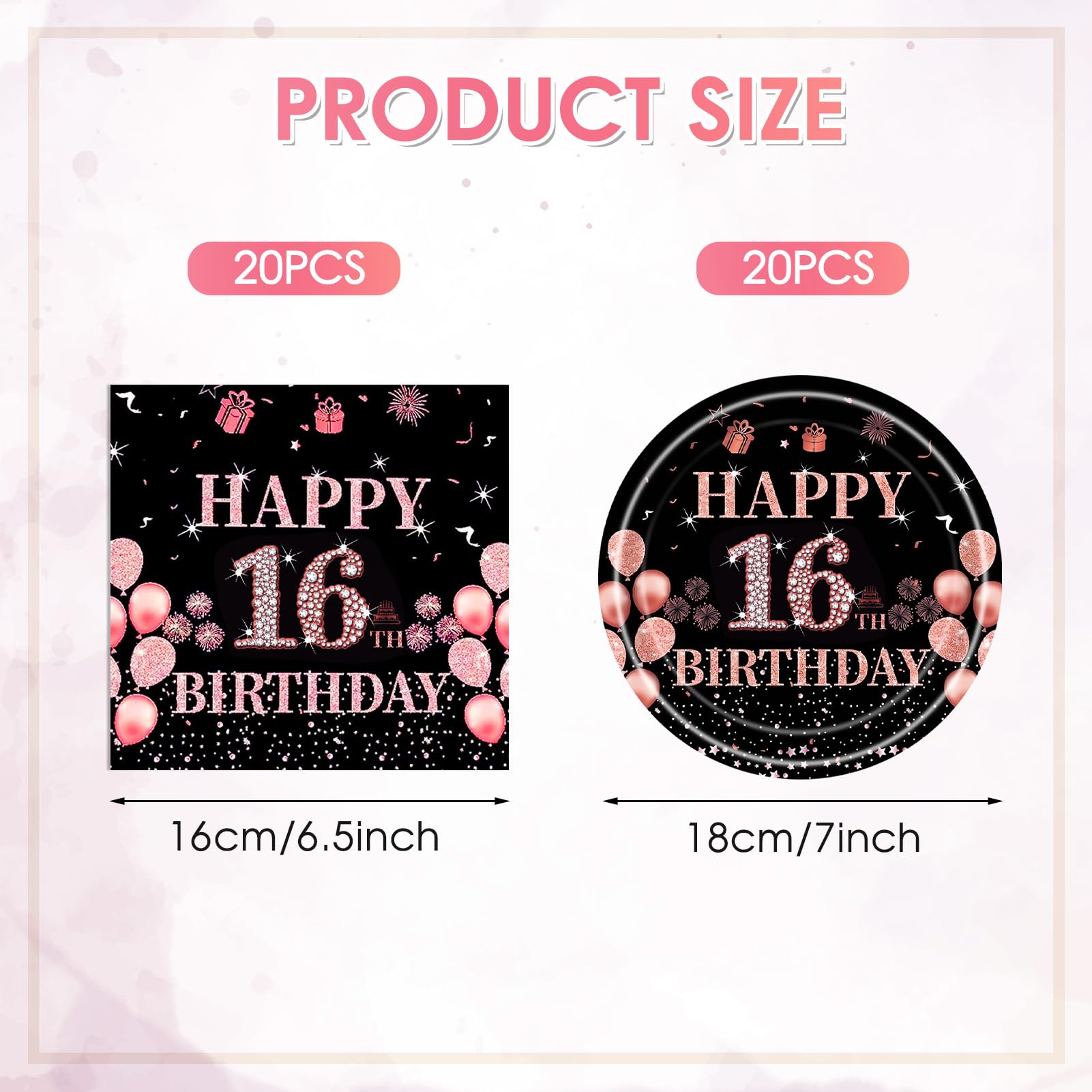 【Package Includes】The party set includes : 20*sweet 16 plates,20*sweet 16 napkins,which can meet the needs of 20 guests.Create a warm and elegant atmosphere with our girls 16th birthday party decorations. Cheers to 16 years.