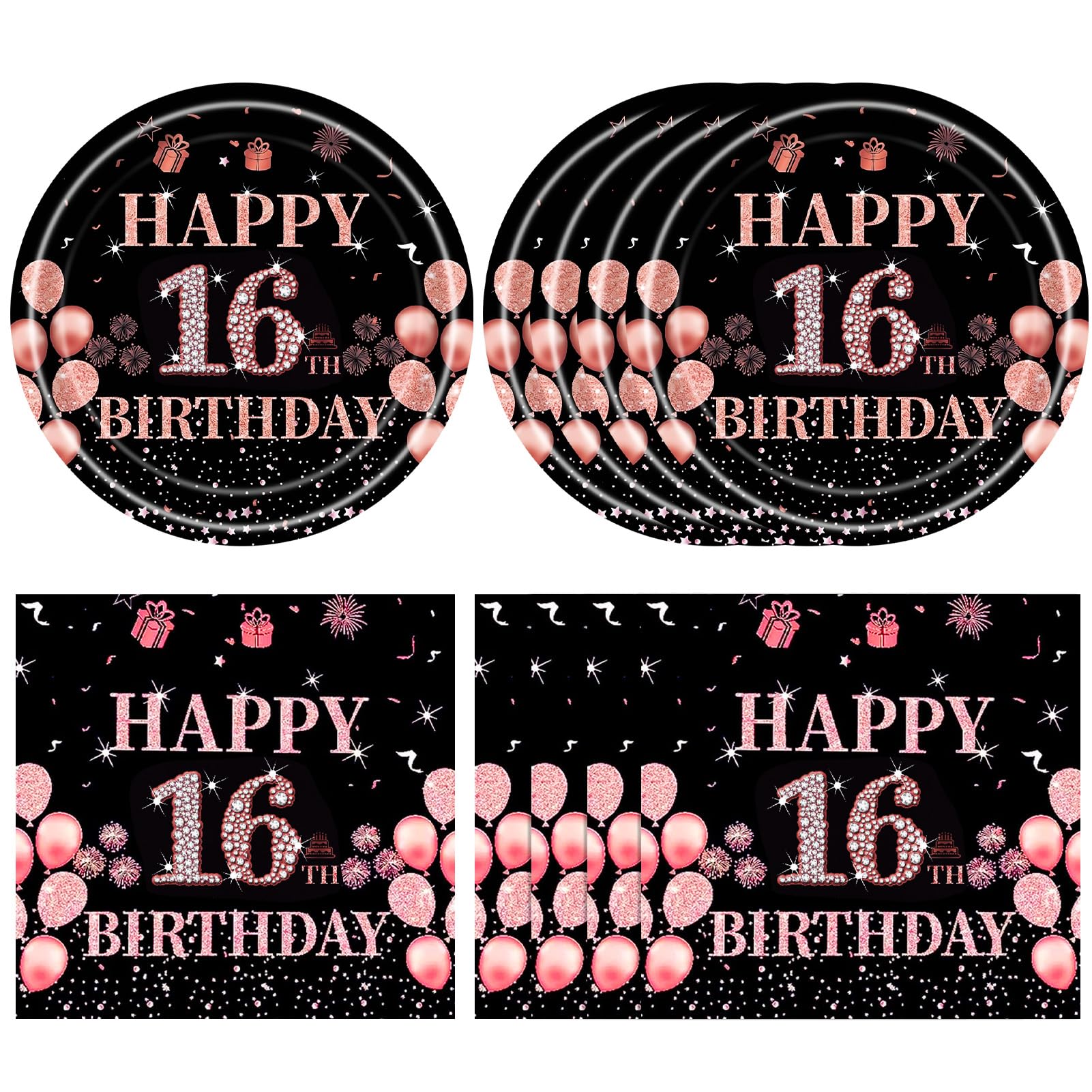 【Sweet 16 Decorations】 16 is an important milestone that must give kids a Sweet 16 party full of ritual. Our happy birthday plates and napkins are printed with clear copy, such as "Happy 16th Birthday", "adding cake, balloons, rose gold pink diamonds ,ribbons and other rich birthday elements", highlighting the theme, leaving a good memory of the child's 16 and making her feel full of love.