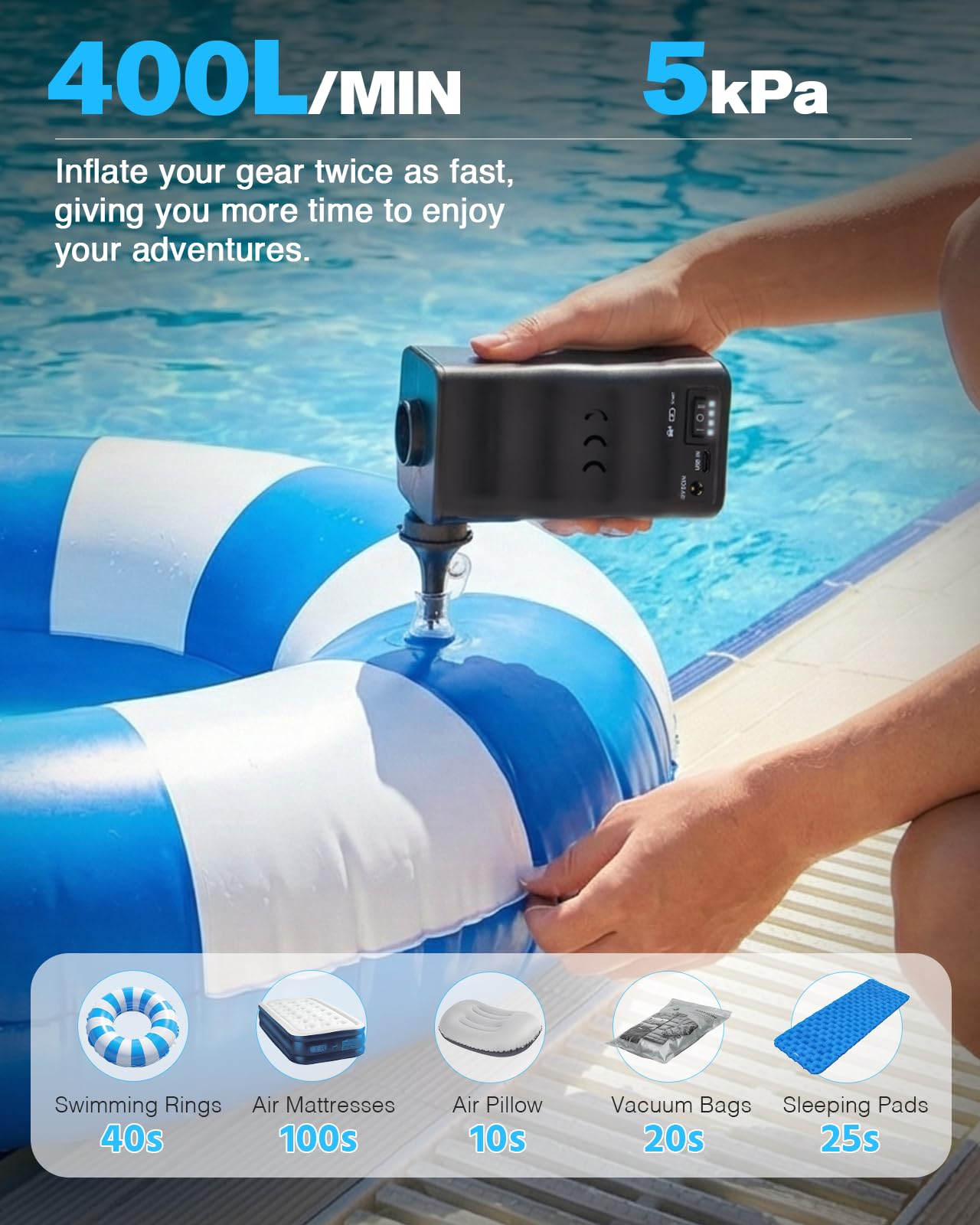 Quick Inflation and Deflation: Insert the nozzle tightly into the air valve and press the switch to quickly inflate. Simple operation and convenient to use