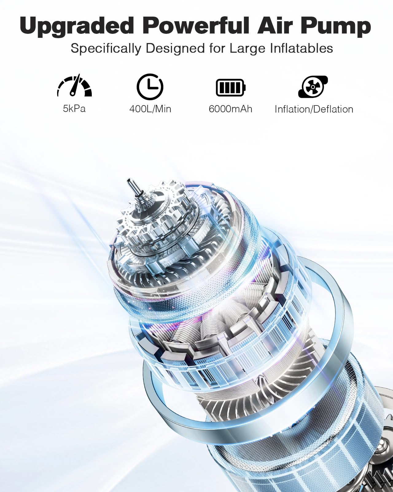 Rechargeable and Long-Lasting: Built in 6000mAh lithium battery, once charge can support you to inflate an standard air bed mattress more than 20 times