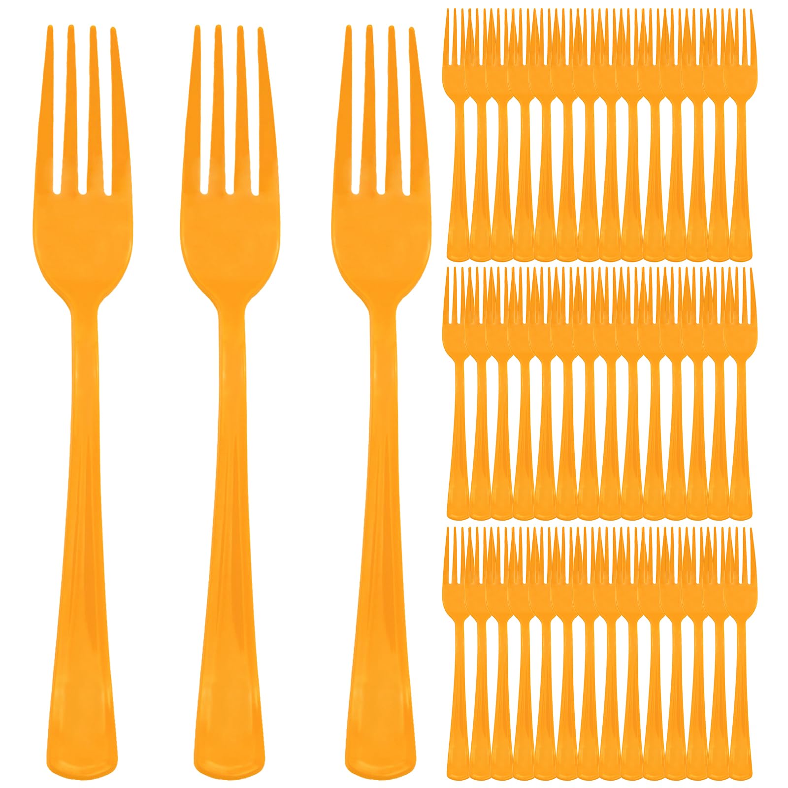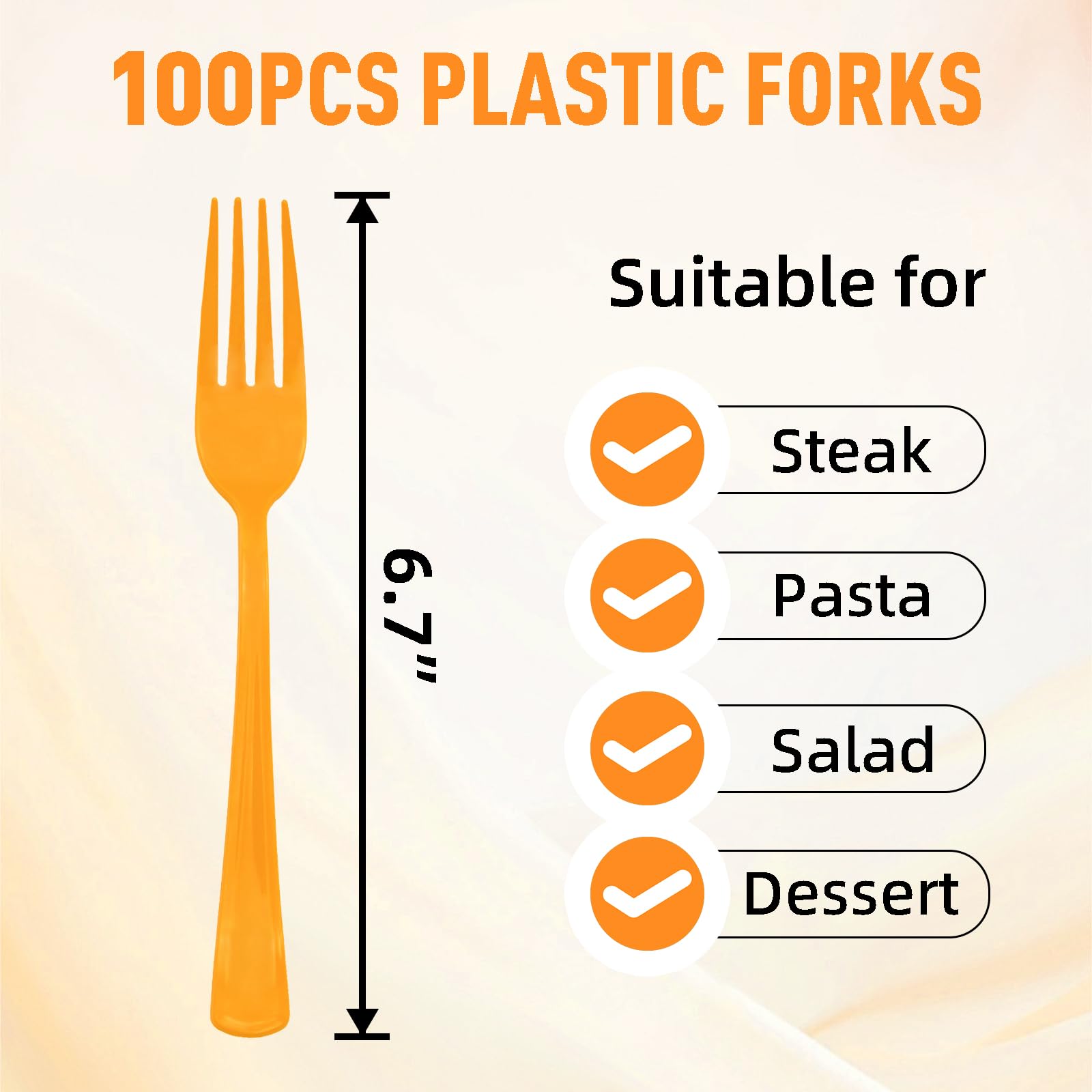 【Cost-Effective Orange Cutlery】: Each pack contains 100 forks, no need to buy frequently, suitable for family storage, restaurant use or large party activities, easily meet the needs of many people. Offering multiple different color options, they are sure to match your decor.