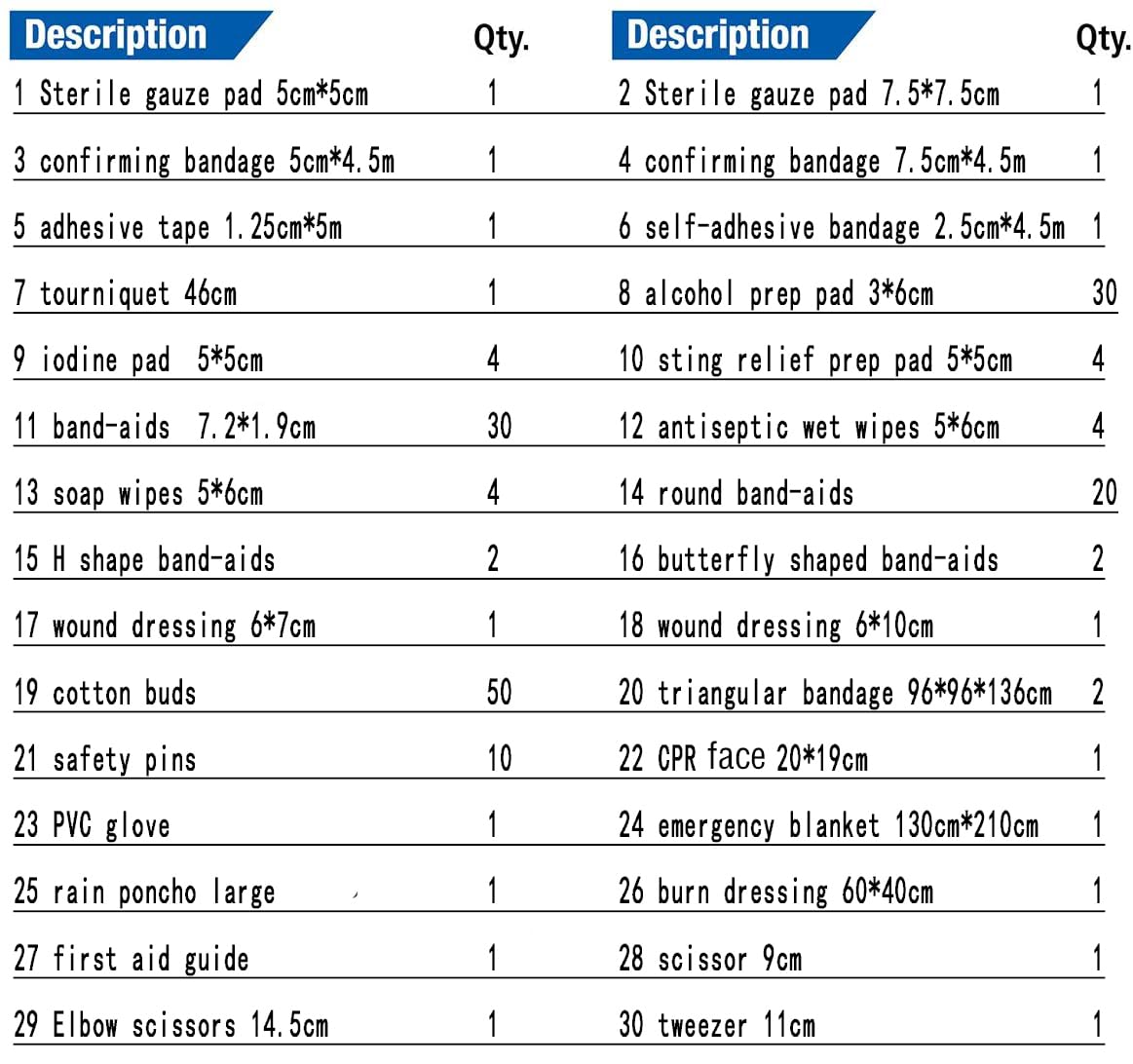 ✅: Our first aid kit includes 30 sets of 180 pieces of medical supplies. With 8'' x 6'' x 3.5'' overall dimension the kit weights only 1 lb. Water resistant nylon case and it protect your medical supplies. It's light, and is all organized nicely. The kit also offer extra space to add your own stuff.
