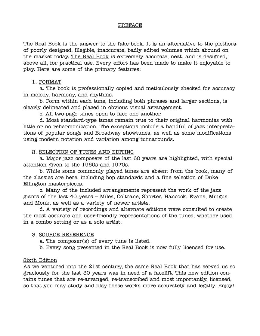 The Real Book – Sixth Edition (C Instruments) is the definitive jazz fake book for musicians, students, and teachers. Fully legal and carefully corrected by Hal Leonard, this authentic collection includes more than 400 timeless jazz standards with clear notation, accurate chord symbols, and essential melodies used by performers around the world. Designed for Gigging Musicians and Learners Alike. Ideal for pianists, guitarists, horn players, and educators, this collection provides everything needed for practice, improvisation, and performance. Its spiral-bound format makes it durable and stage-ready for gigs, classrooms, and jam sessions. The notation is clean, legible, and perfectly transcribed for real-world use. What’s Inside. This updated edition corrects errors found in previous underground copies, offering an ethical, accurate, and long-lasting resource. The Real Book includes works by Duke Ellington, Miles Davis, John Coltrane, Thelonious Monk, and hundreds more, preserving the look and feel of the original charts trusted by generations of jazz artists. Full Song List Highlights: All Blues * Body and Soul * Stella by Starlight * My Funny Valentine * Take Five * Autumn Leaves * Misty * Footprints * Naima * Blue Bossa * ’Round Midnight * Giant Steps * So What * and hundreds more beloved jazz standards. A Must-Have for Every Jazz Library. Perfect for rehearsals, study, or live performance, this official edition helps musicians strengthen reading, phrasing, and improvisation skills. It’s an invaluable reference for professional players and an inspiring gift for jazz enthusiasts. Bring music to life. Explore the authentic sound of jazz with this essential Real Book — the trusted companion for students, teachers, and performers everywhere.