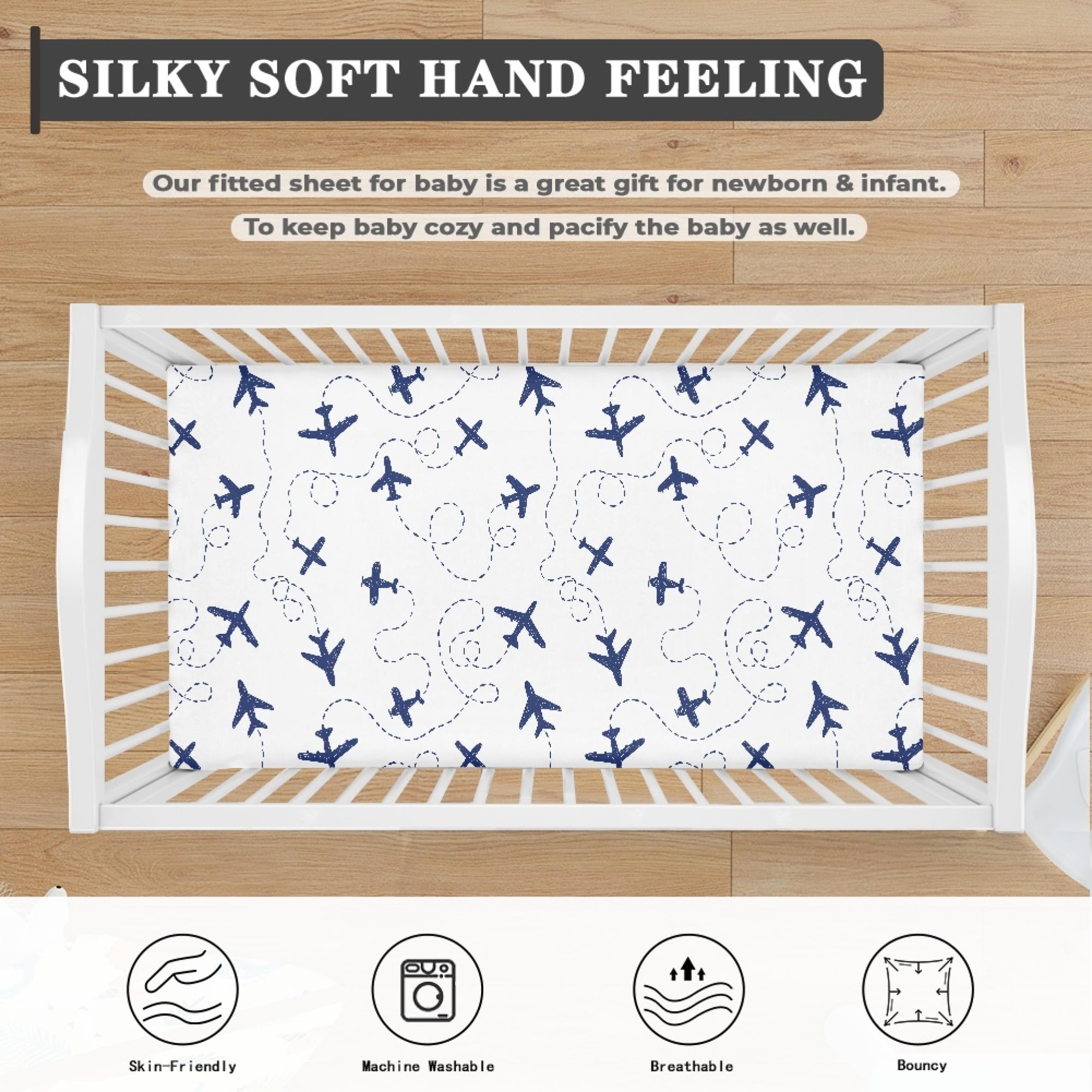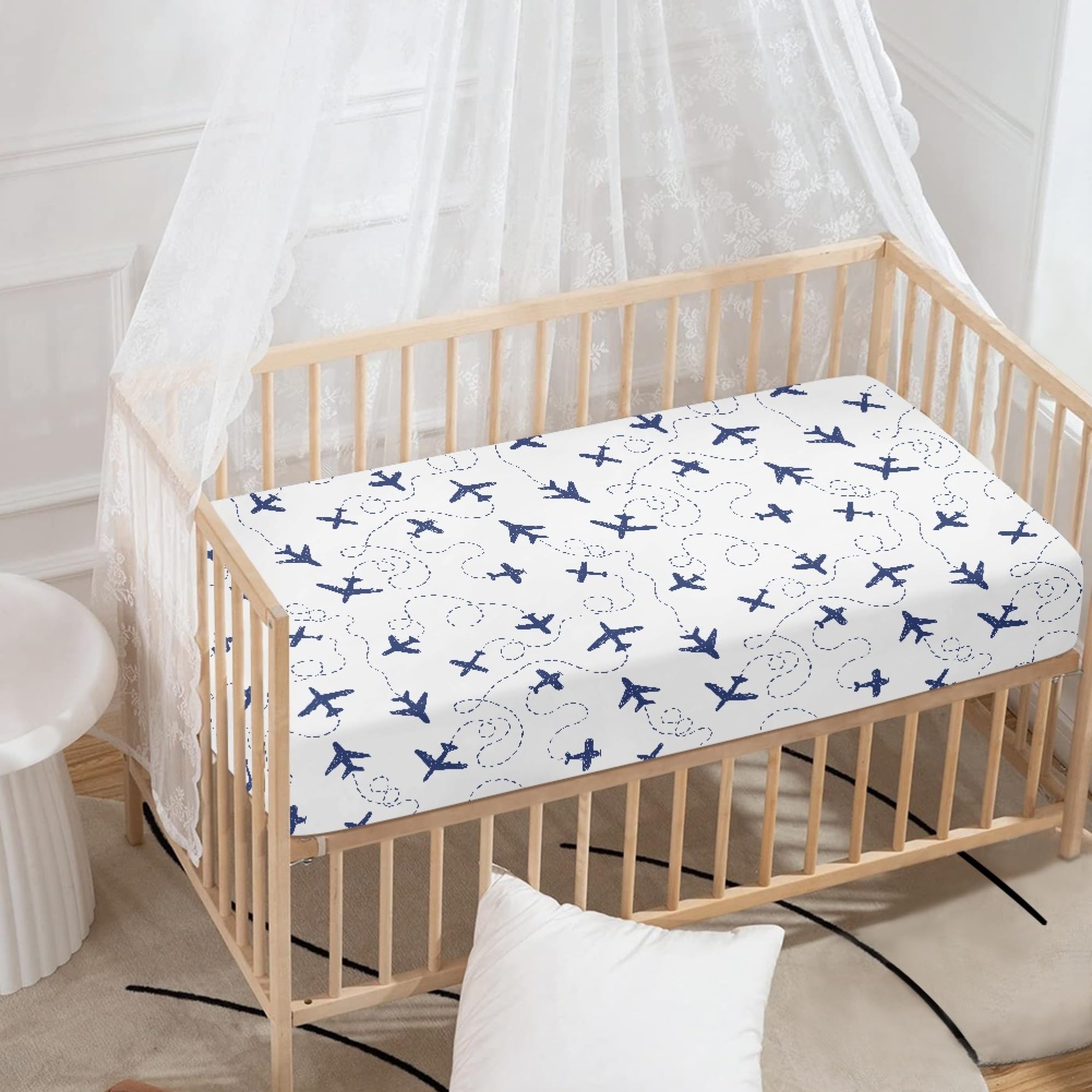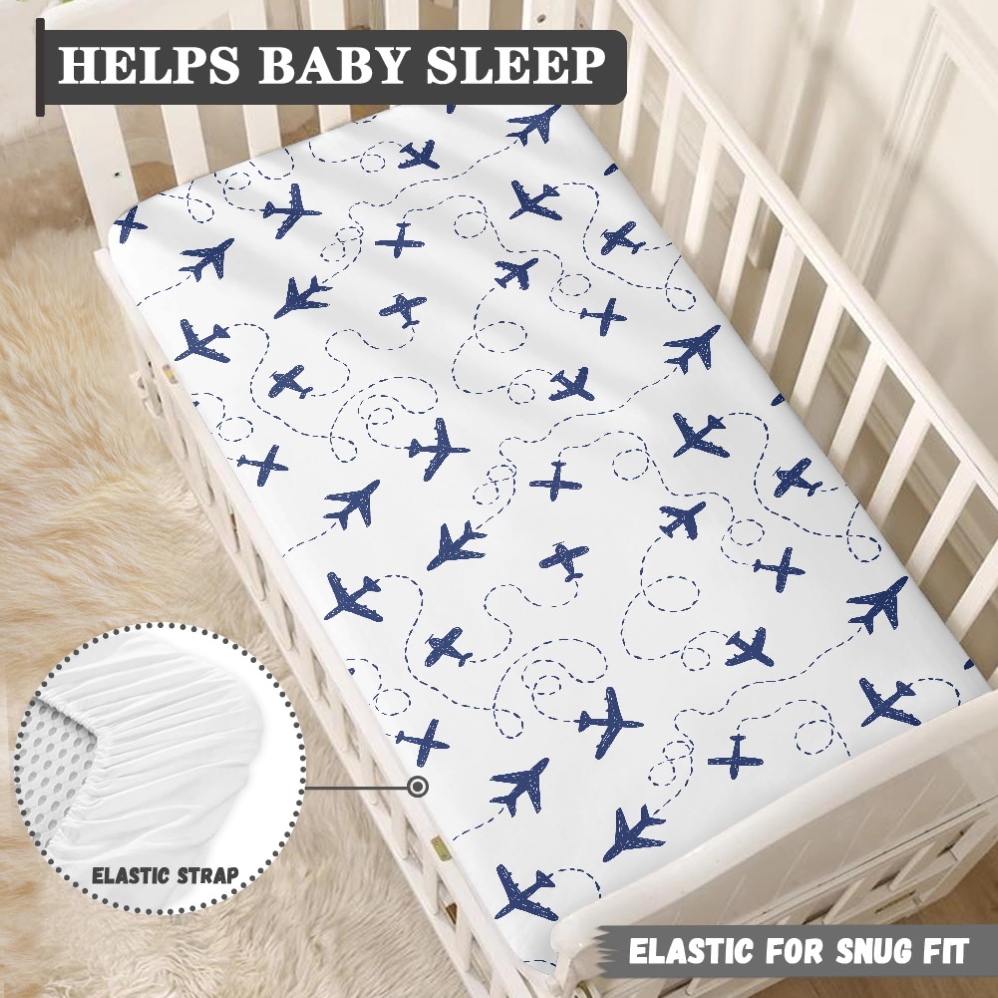 Universal Application: These watercolor airplane fitted baby crib sheets fit a standard size 28" x 52" x 8" crib mattress. Each sheet has elastic on all four sides