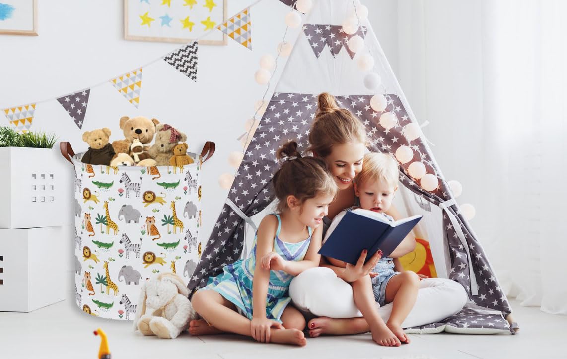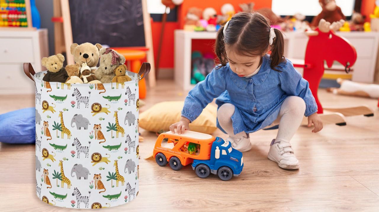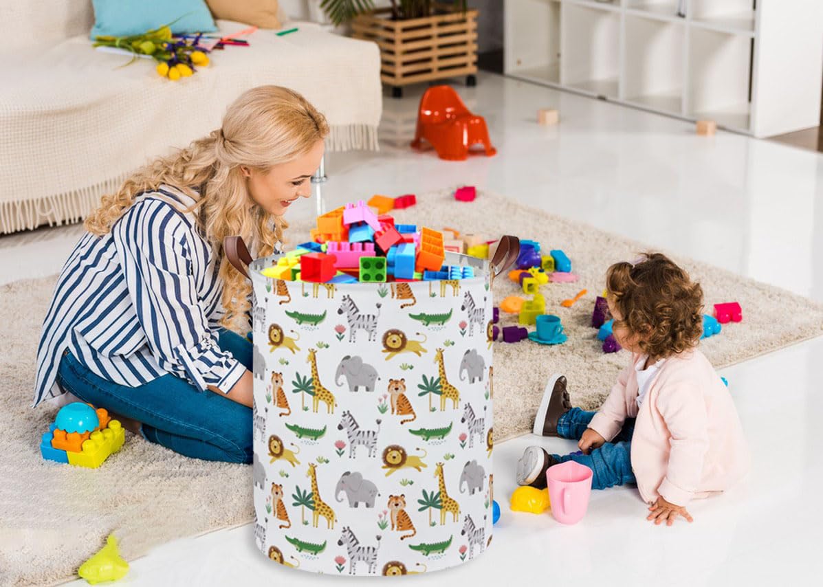 100% Guaranteed: We're sure you & your youngsters will enjoy your new canvas storage container.But if you're not happy, return it anytime for a full money-back refund Specifications:Material: 85% cotton, 10% PE and 5% leather handles.Size:15.7(D)×19.7(H)inches,Check the size before purchasing,please.Package included: 1 x Canvas Storage.Perfect basket for kid's hamper , children's' toys, magazines, craft supplies The Baby Laundry Baskets Great for a nursery, kids room, playroom, craft room, bathroom, kitchen and closet organization etc.This storage basket are easy to clean,just wipe with a damp sponge or cloth.