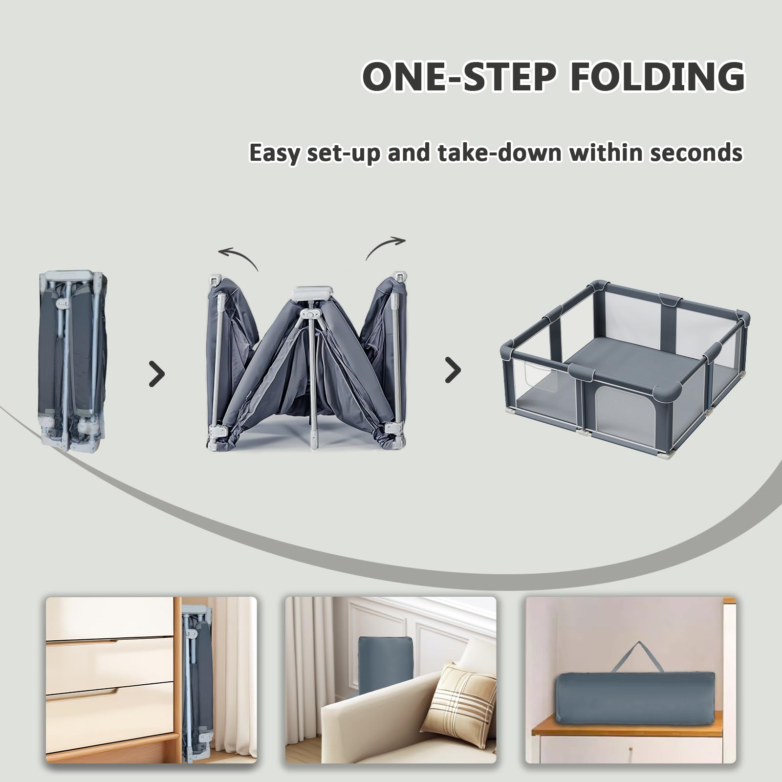 Ultra-Portable Baby Playpen: Sets Up & Packs Down in Seconds: Effortless travel is here! This playpen assembles and disassembles quickly without tools and includes a foldable mat. It stores compactly in the included tote bag, making it the perfect on-the-go solution for visits, vacations, or room changes.