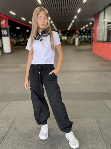 Kimoda Girls Cargo Pants Size 6 Black Jogger Cargo Pants Elastic Waist for Girls Clothes Drawstring Pants