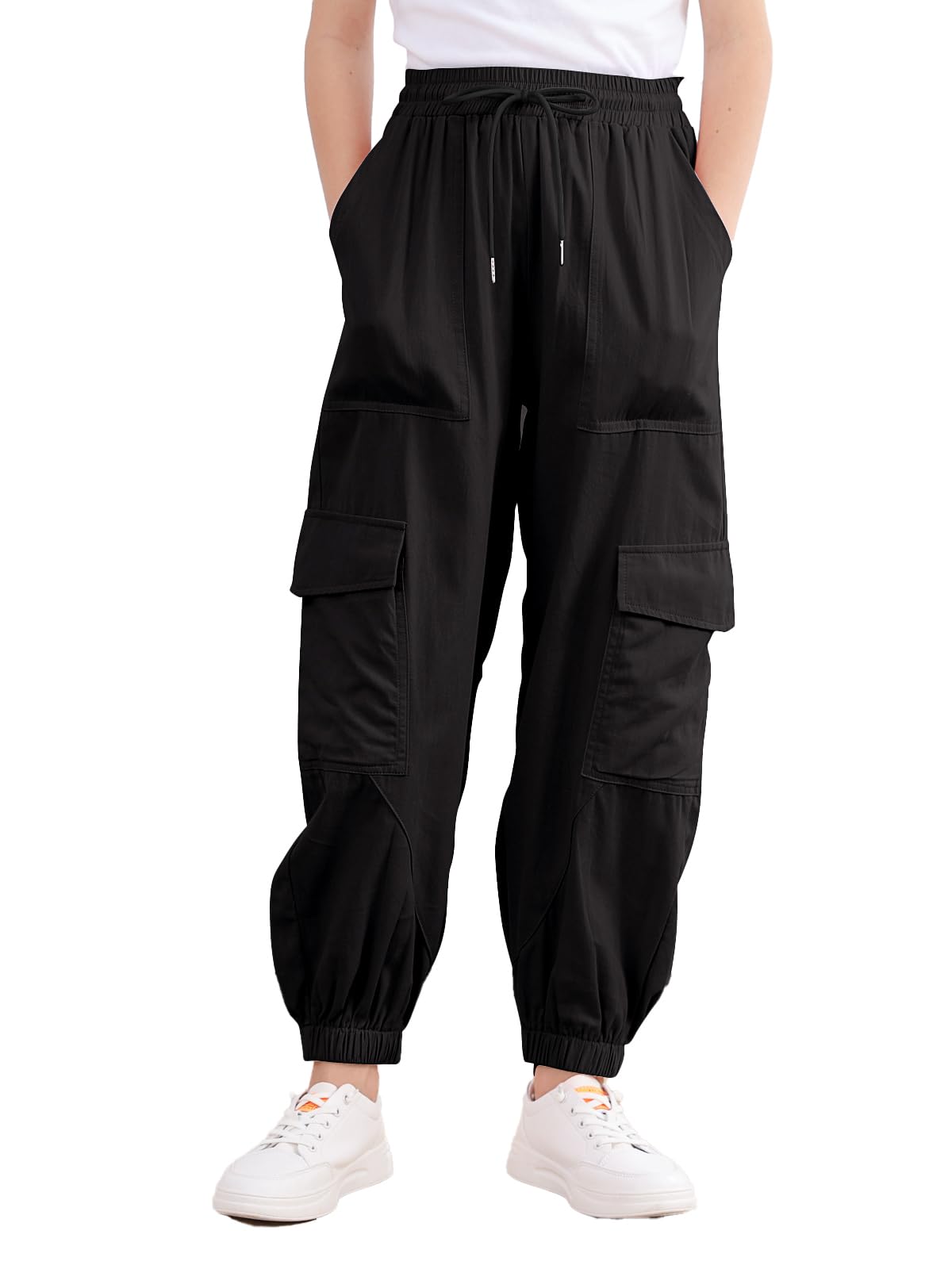Design:Elastic waist design and drawstring,elastic ankle cuffs,Loose and easy to adjust.Cargo jogger pants perfect for active girls and won't have bound feeling.