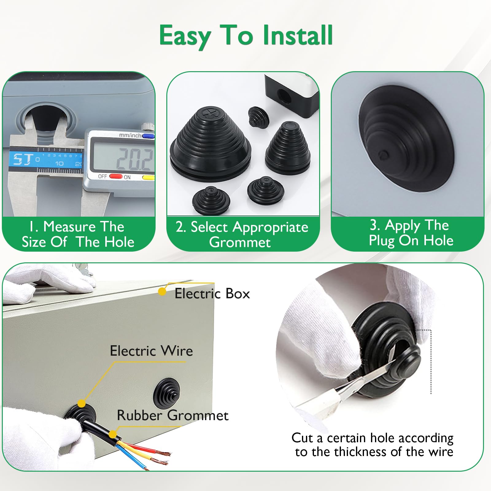 Easy Installation: Each rubber grommet is flexible and durable, super easy to install; According to the thickness of the cable, the diameter of the rubber plug can be cut at will, and you can easily snapping the rubber grommet directly into the drill hole