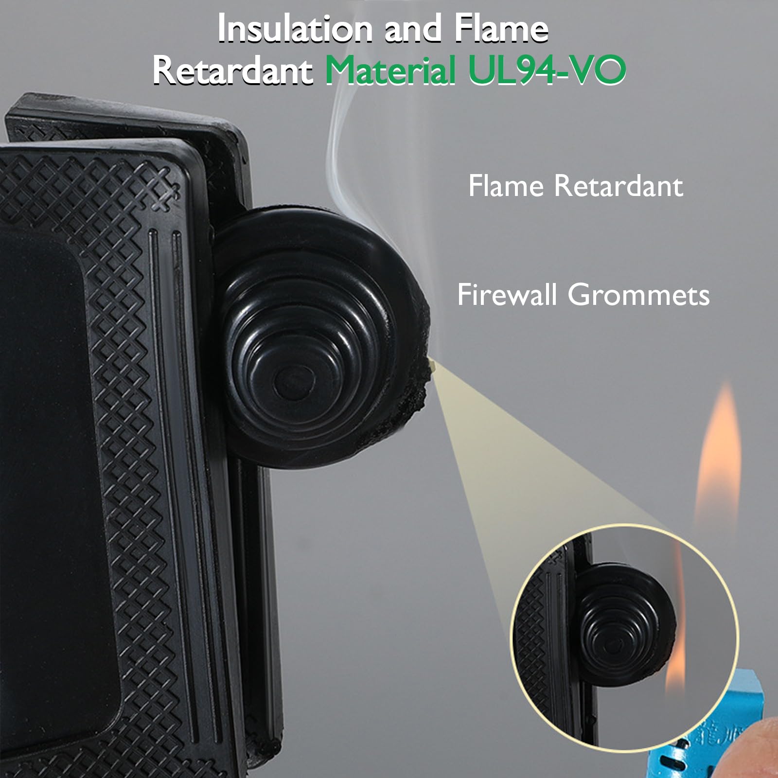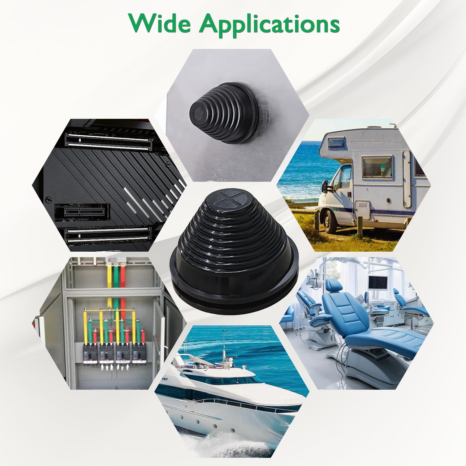Multi-Functional: Firewall grommet for holes are insulation, flame retardant; This wire grommets helps protect wires and cables from chafing and scraping against sharp metal edges, pointed corners and rough surfaces, isolating dust and rain; Suitable for all kinds of high and low voltage electrical cabinet and the box of the inlet and outlet protection seal; Widely applied to steel cylinders, valves, pumps, electrical appliances, water pipes houses and more wire