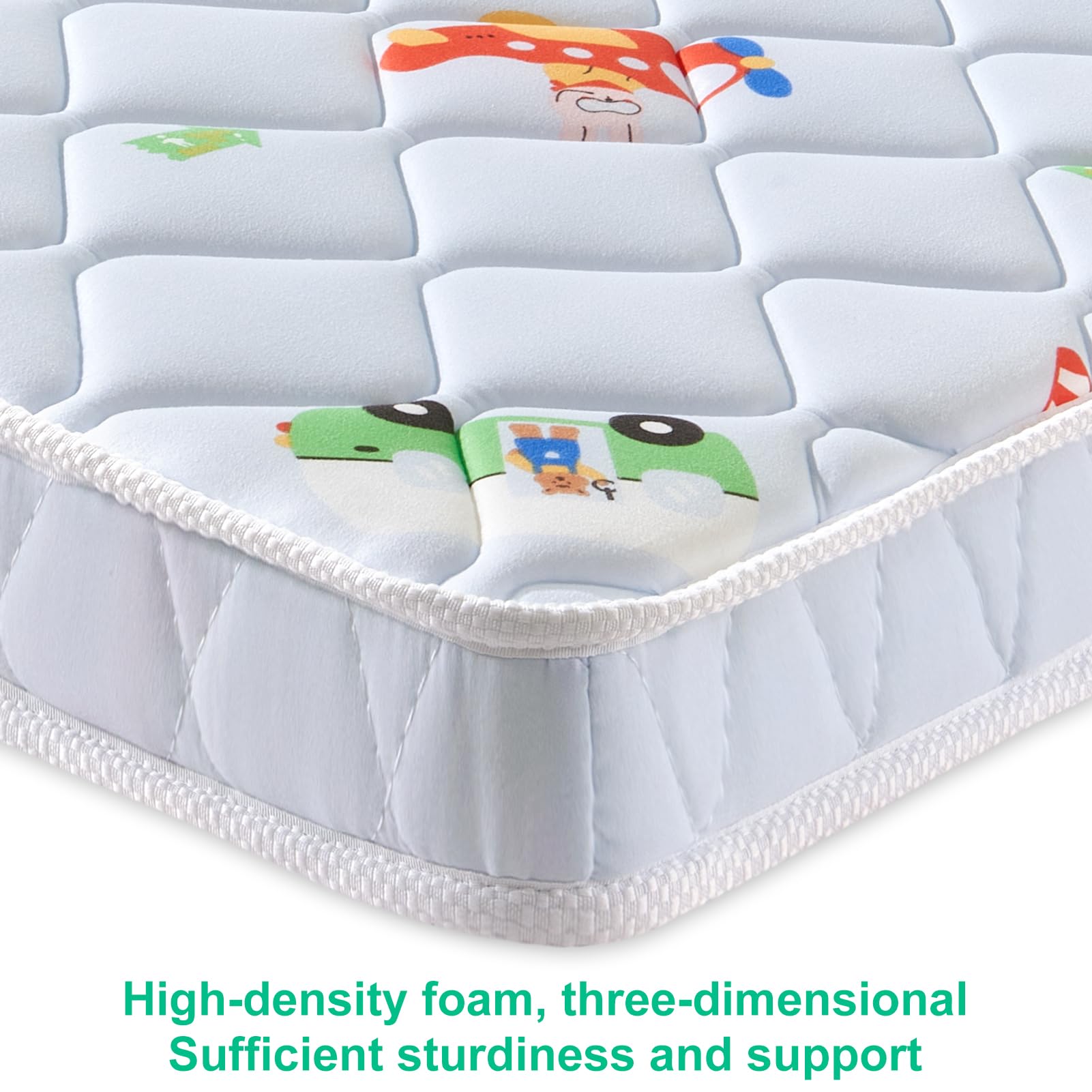 【Quiet and odorless】The surface of the crib mattress is made of high-grade velvet. The toddler mattress is very quiet and does not emit a pungent smell.More importantly, it is a breathable and non-toxic material.