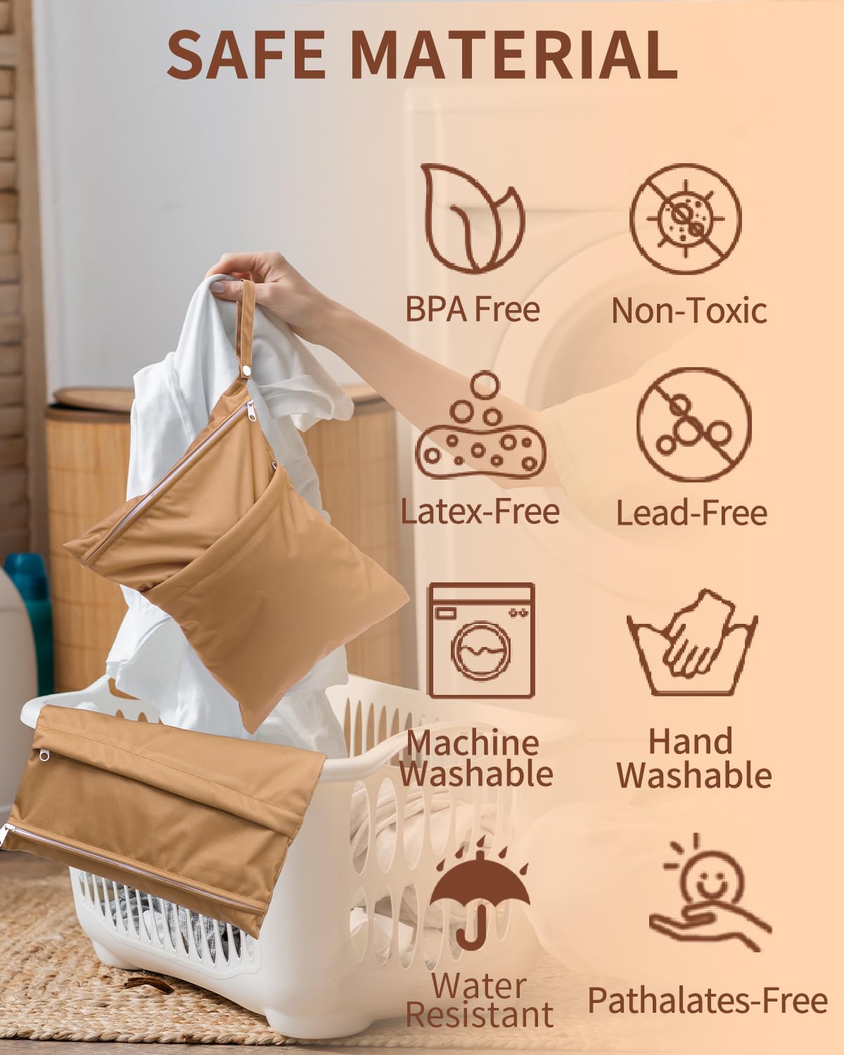 Premium Quality & Water-Resistant: Babygoal wet bags are of high quality. The outer layer of wet bags is made of waterproof polyester and breathable TPU material. They are safe to preserve baby products, as they are completely free of dioxins, sodium polyacrylate and other chemicals, or contain any BPA, Phthalate, Latex or Lead as well.