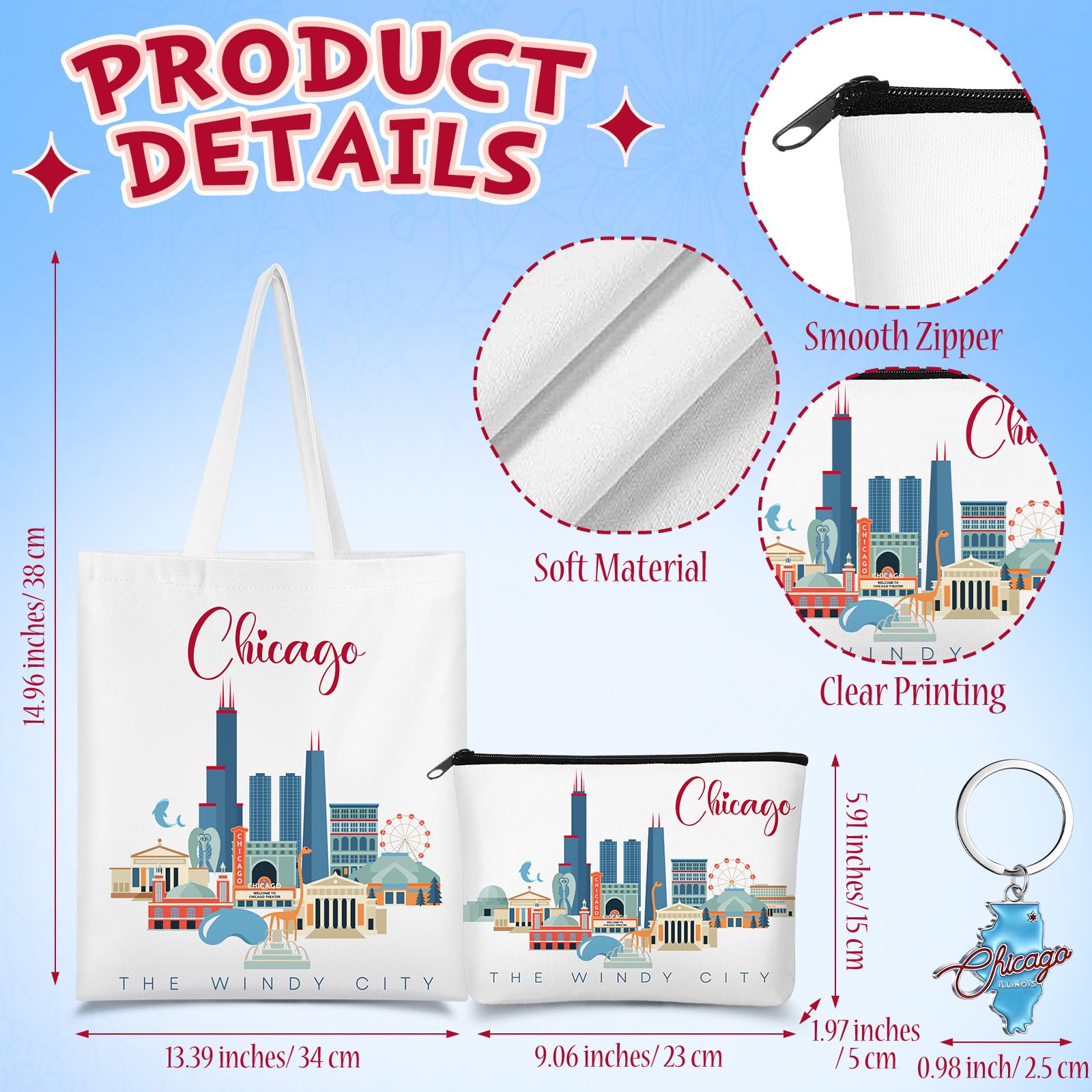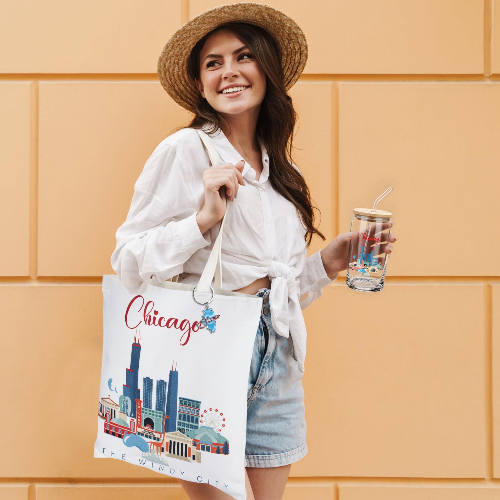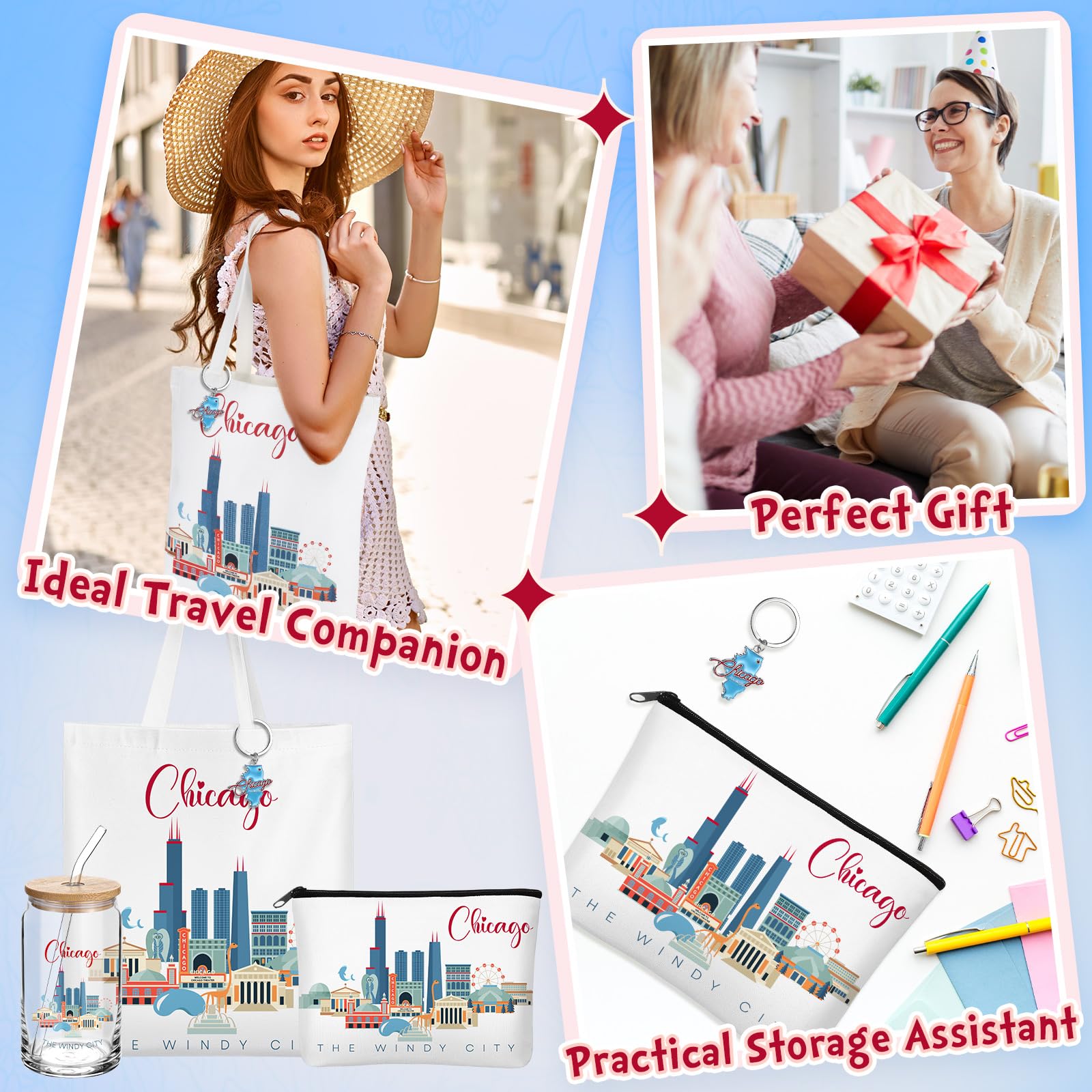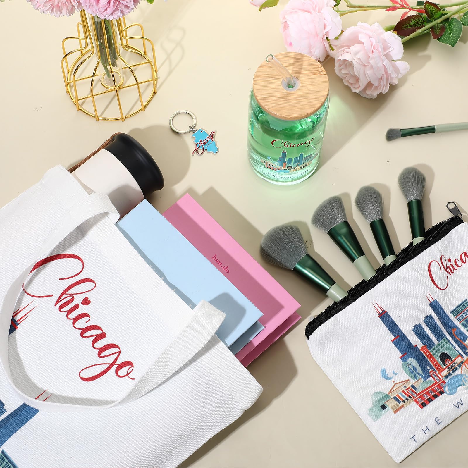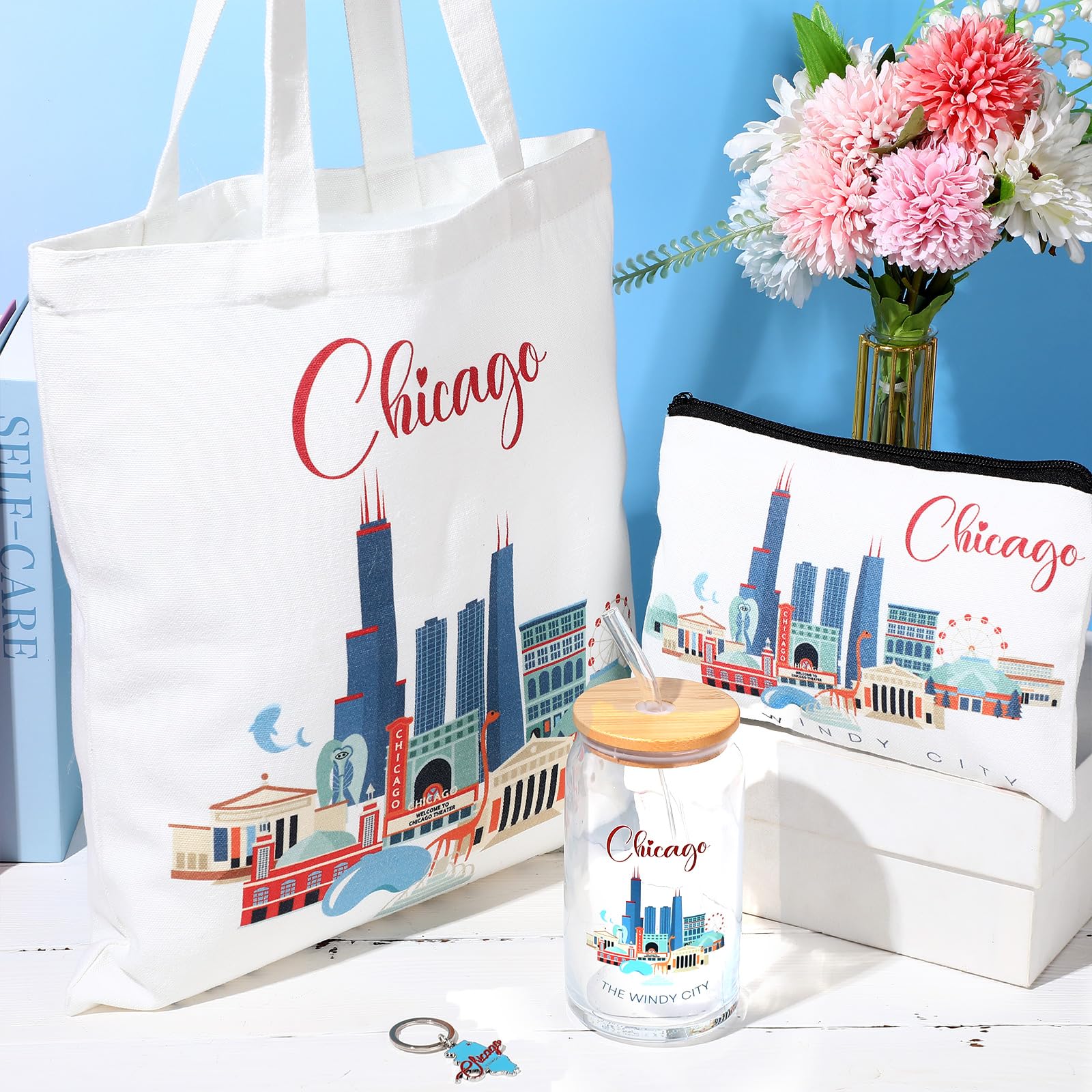 Package Includes: The Chicago travel gift set you receive includes 1 16 oz Chicago glass, 1 Chicago canvas bag, 1 Chicago cosmetic bag, and 1 Chicago keychain; This souvenir set allows you to give a complete gift to women who love Chicago