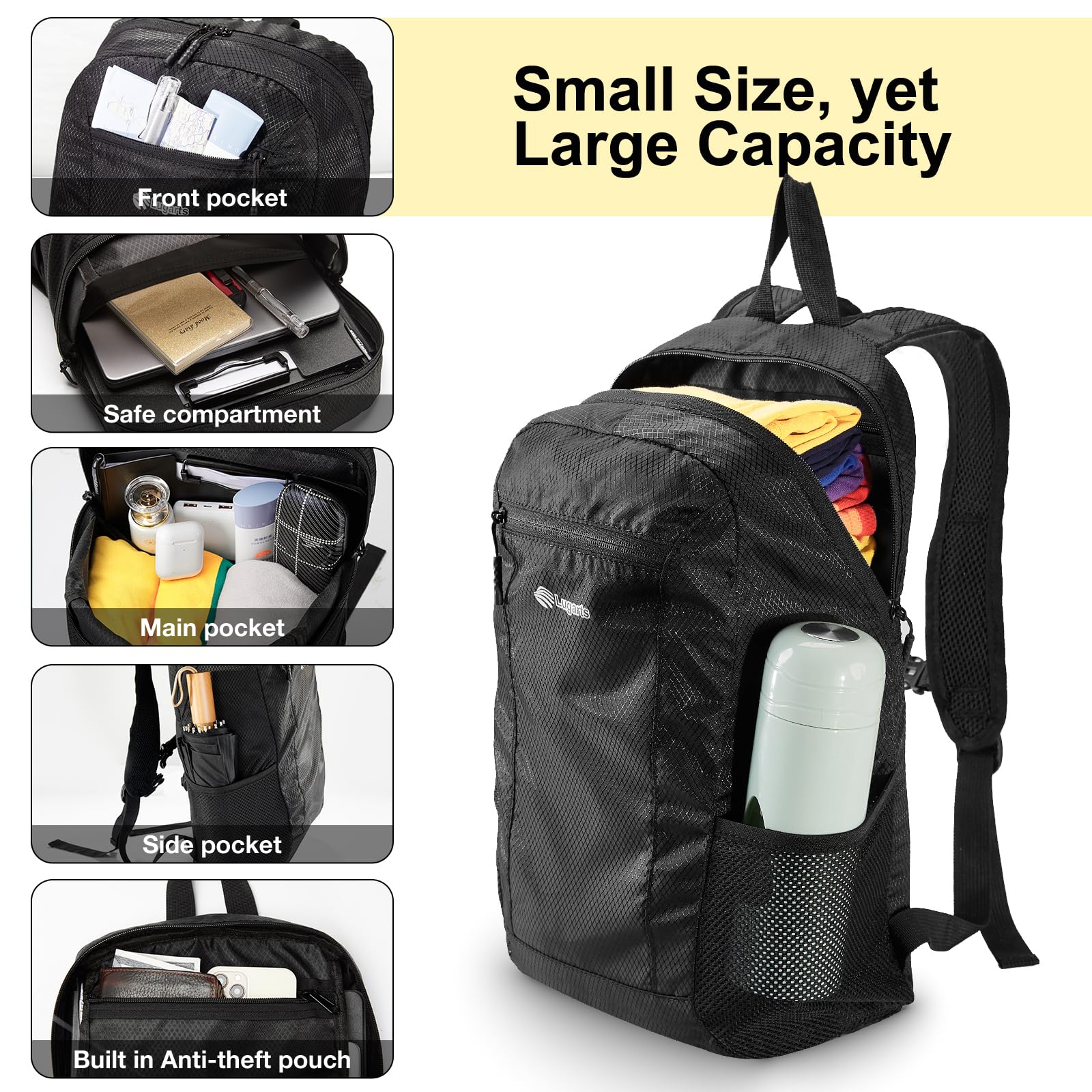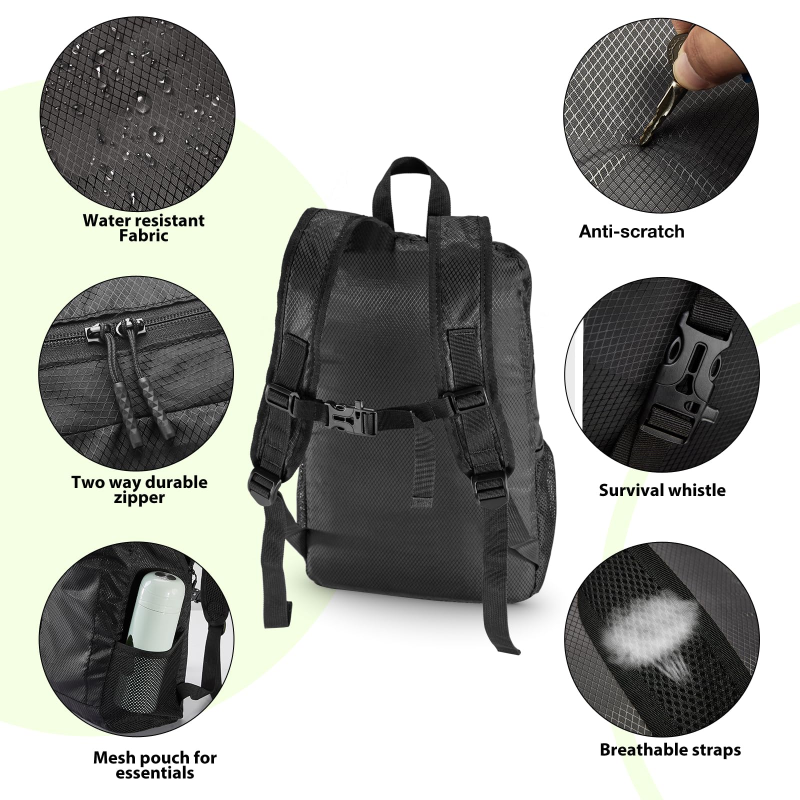 Foldable and Compact : When not in use, hikers can easily fold the small backpack into its inner pocket, as small as a palm, which can be easily packed into your bag or suitcase, providing additional storage space to carry extra gear or souvenirs