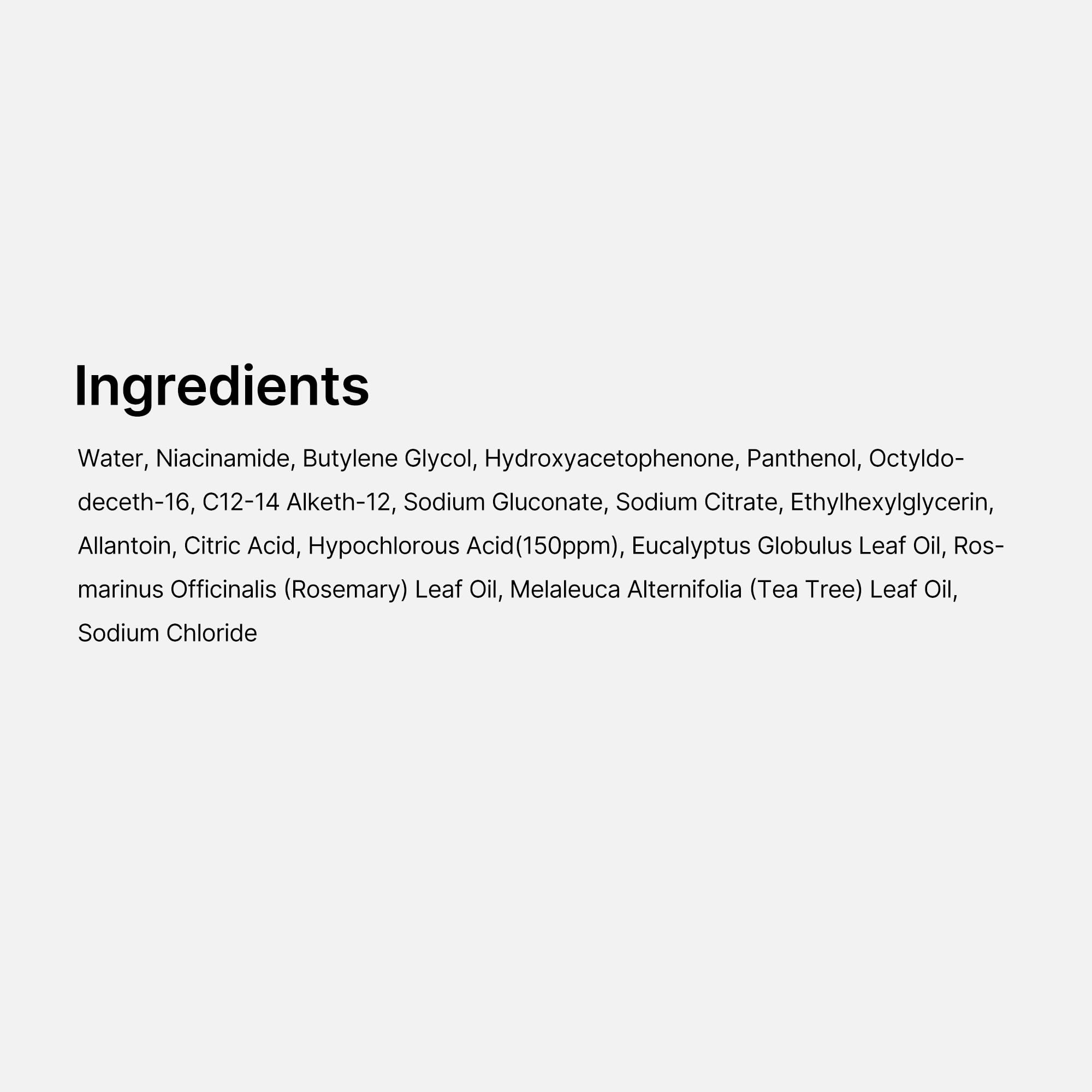 [Formulated with Care and Precision] Balanced with 150ppm HOCl and stabilized with Sodium Citrate and Citric Acid to maintain optimal pH and long-lasting freshness.