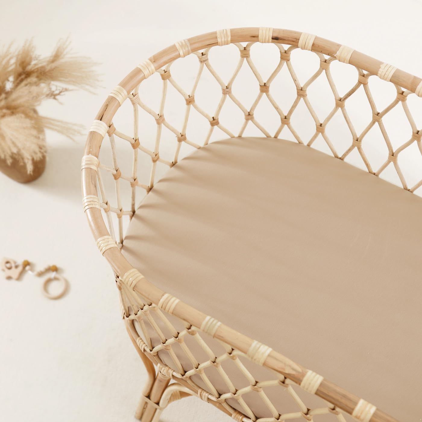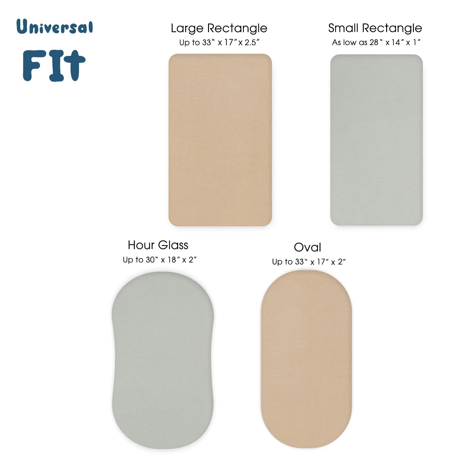 Universal Fit – Measuring 32" x 16" x 5". Our bassinet sheets fit almost all standard oval, round, rectangle, hourglass shaped bassinet mattresses and changing pads. Each bassinet mattress pad cover comes with an elastic band encased at the bottom for safety.