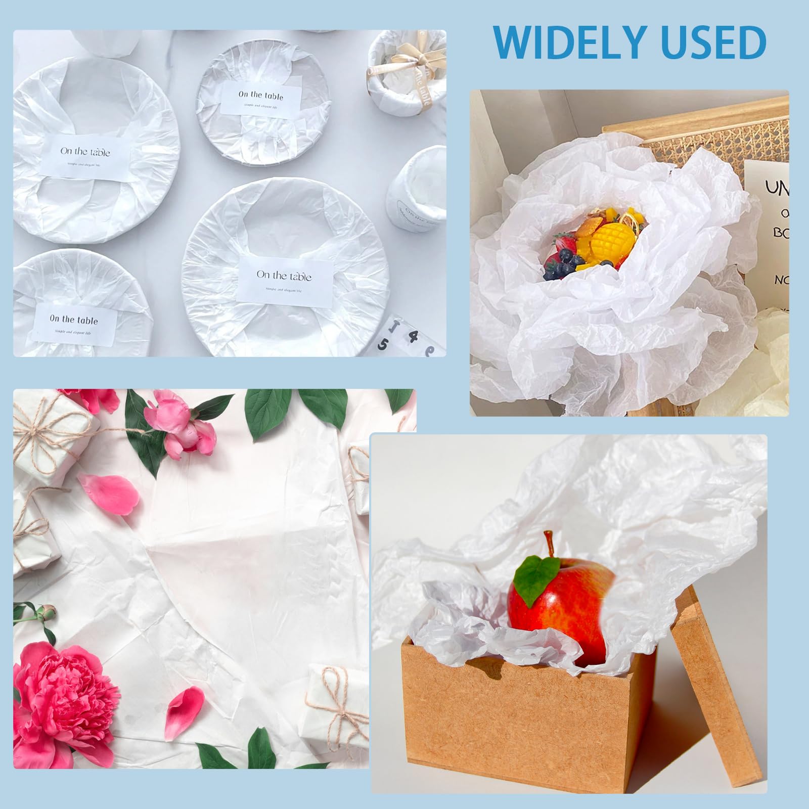 Wide Application: Acid free archival tissue paper has a wide range of uses. It can be used to cover clothes, books, jewelry and some small objects. It can also be used to wrap photo storage, flowers, gifts, shoes and other odds and ends