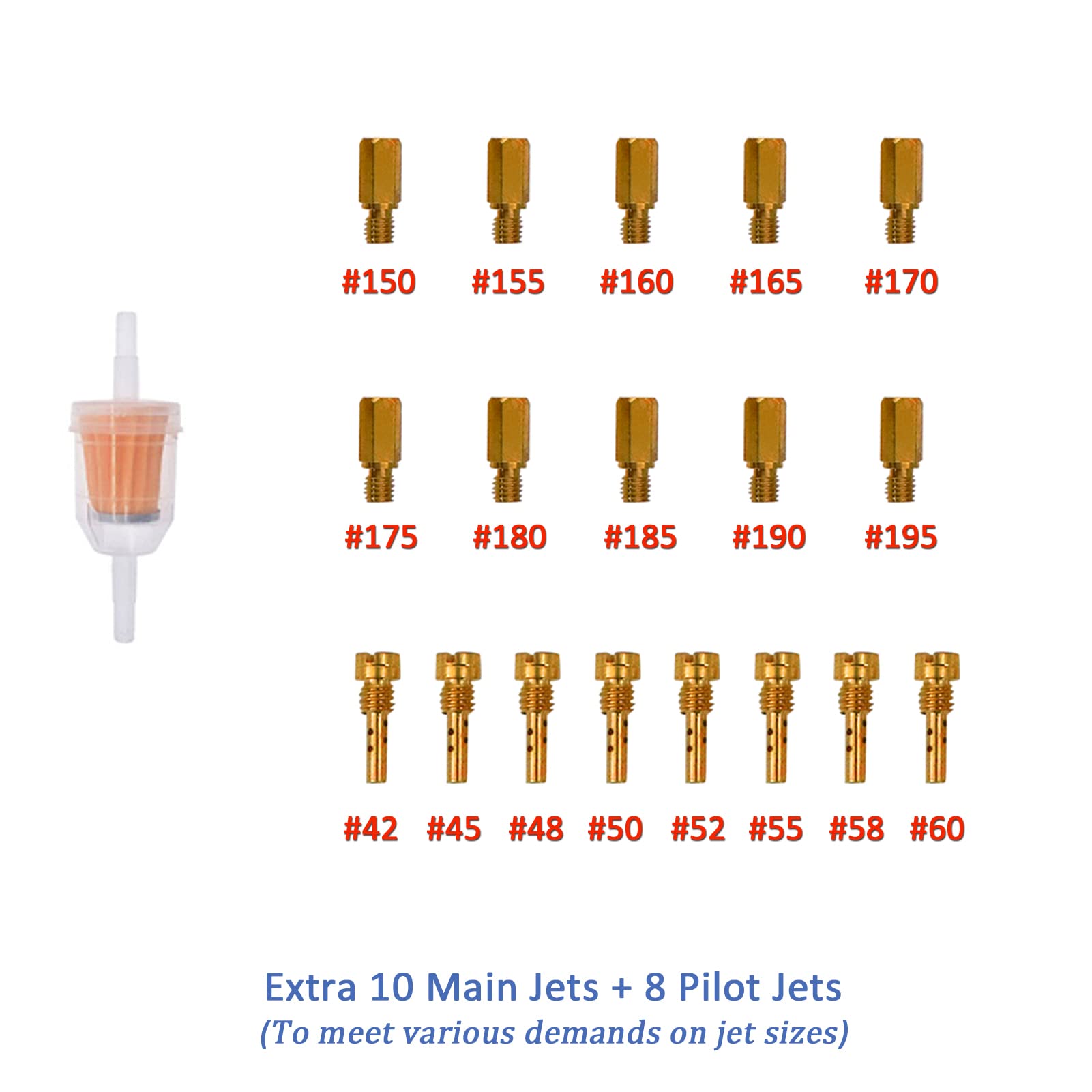 Main jet #170, pilot jet #48; Pre-installed internal parts, direct installation and no modification is needed.