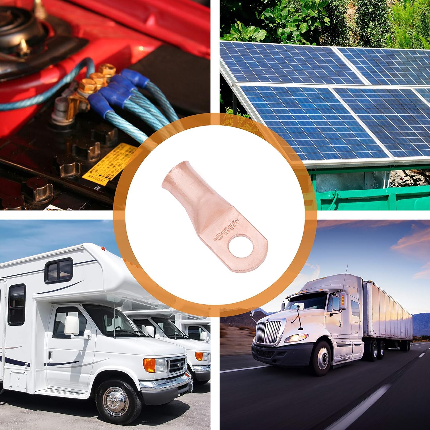 WIDE APPLICATIONS: Selterm copper wire connector lugs have a close end pad design, keeping electrical components, battery and ring terminals safe and act as waterproof wire connectors which prevents solder from leaking during installation of lugs or while using as a heat shrink wire connectors for your battery in Solar Panel system, Golf Carts, Power Inverter, RV's, Marine, Home appliances, DIY Electrical wiring, Automotive and other equipment.