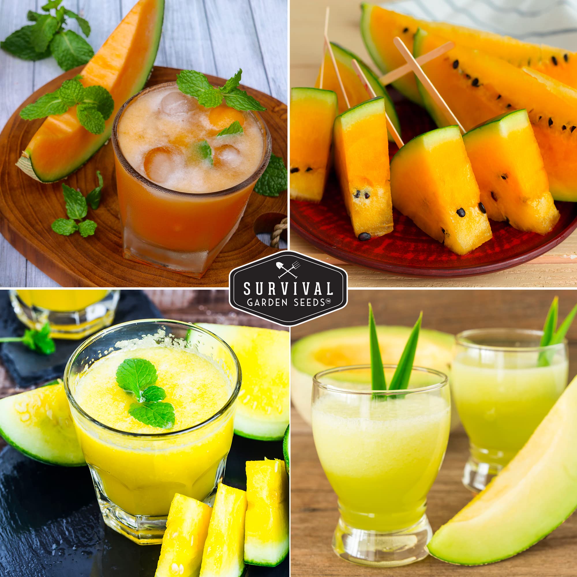 HEIRLOOM MELON SEED VARIETY PACK – Honey Rock and Hales Best cantaloupe (Cucumis melo var. cantalupensis), Honeydew (C. melo var. inodorus), plus Yellow Petite, Tendersweet Orange, and Georgia Rattlesnake watermelon (Citrullus lanatus)