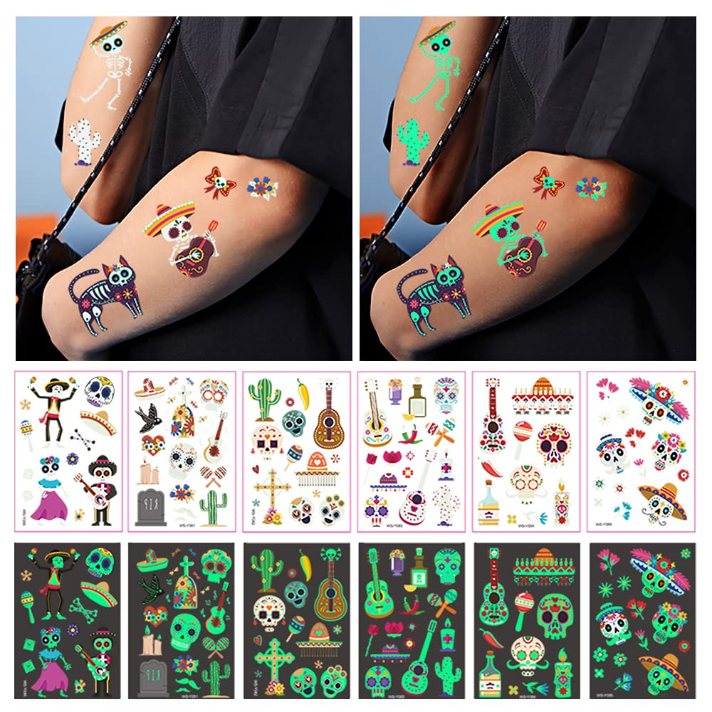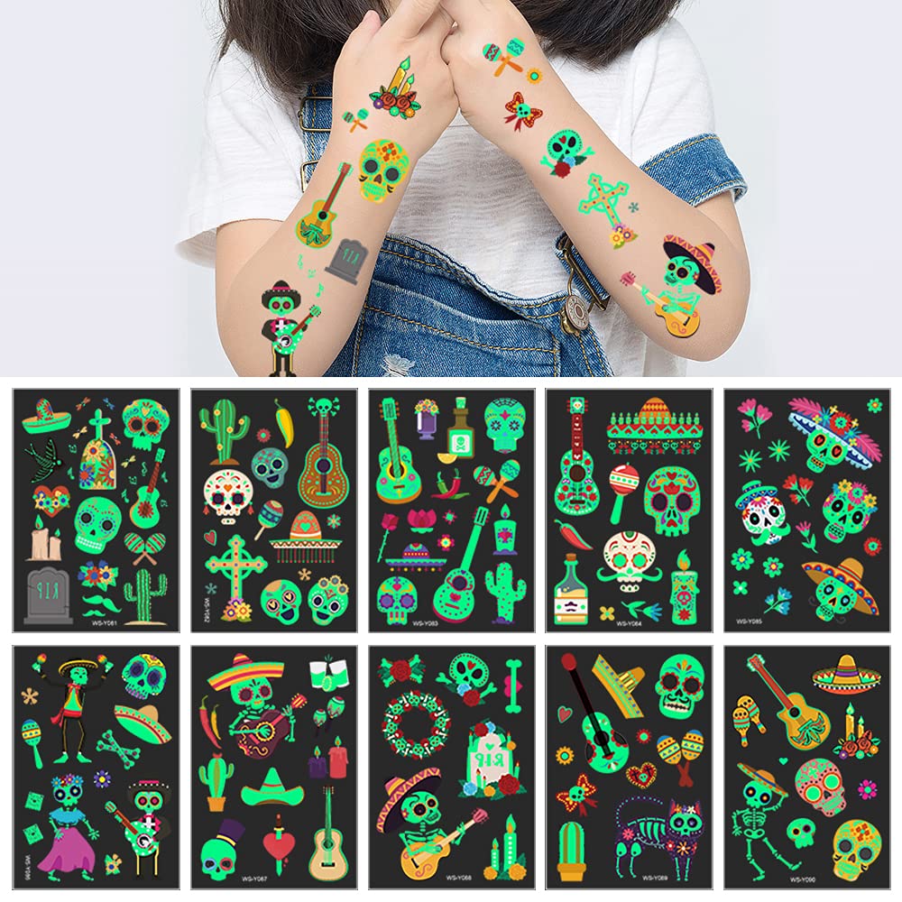 Day of the dead lovely gifts for kids - 4.3*2.95 inches 10 sheets 100 pieces luminous day of the dead temporary tattoos