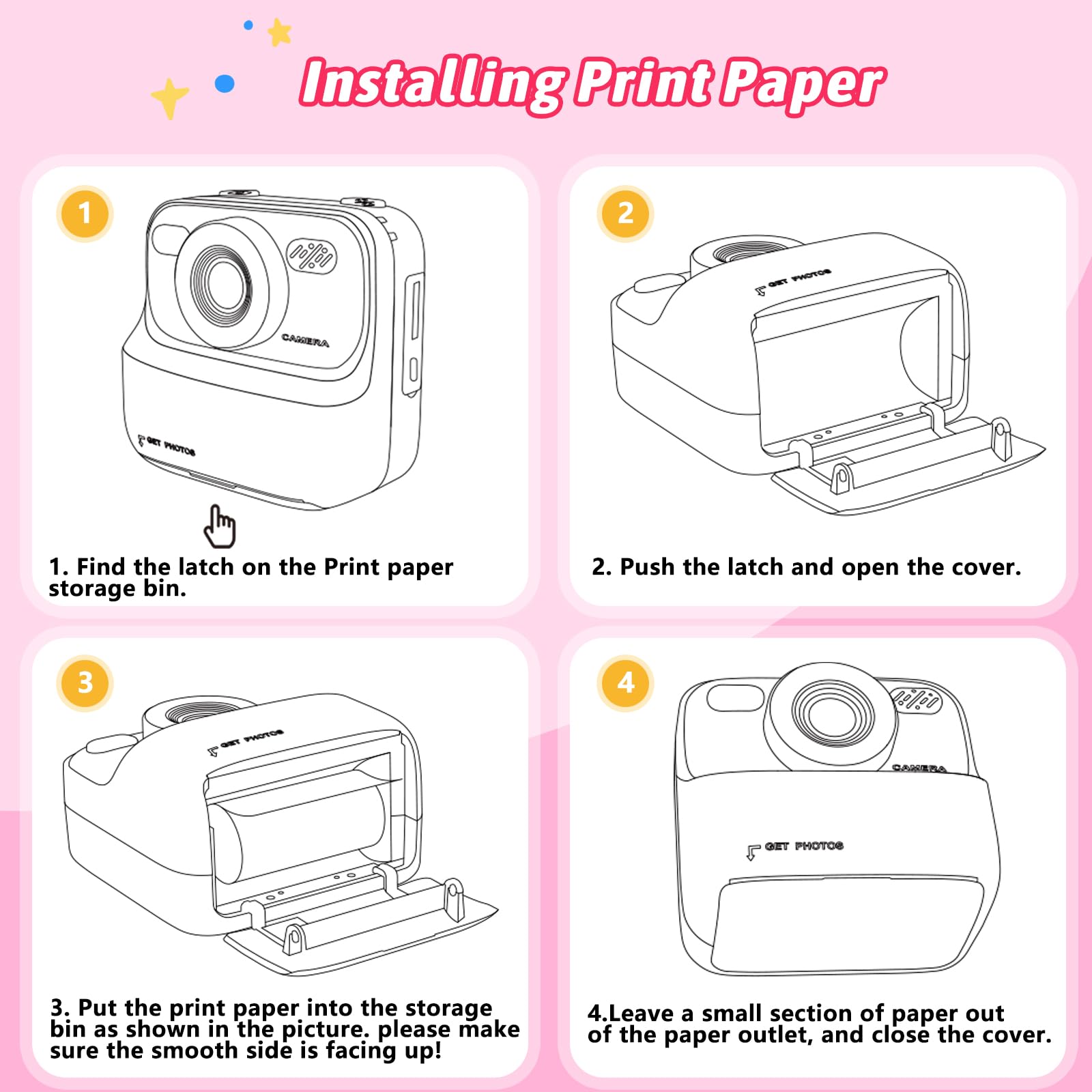 【Creative Instant Print Camera Special Designed for Kids】This kids digital camera with an instant printing function, you can obtain color photos store in SD Card while quickly printing black and white photos, our kids cameras are equipped with 2 print modes, grayscale and dot matrix printing, and 3 types of color depth printing. With Advanced thermal printing technology, no toner and BPA, it is very safe to kids. It helps Recording your child's happy growth, develop kids imagination and creativity, enhance the fun of parent-child interaction.
