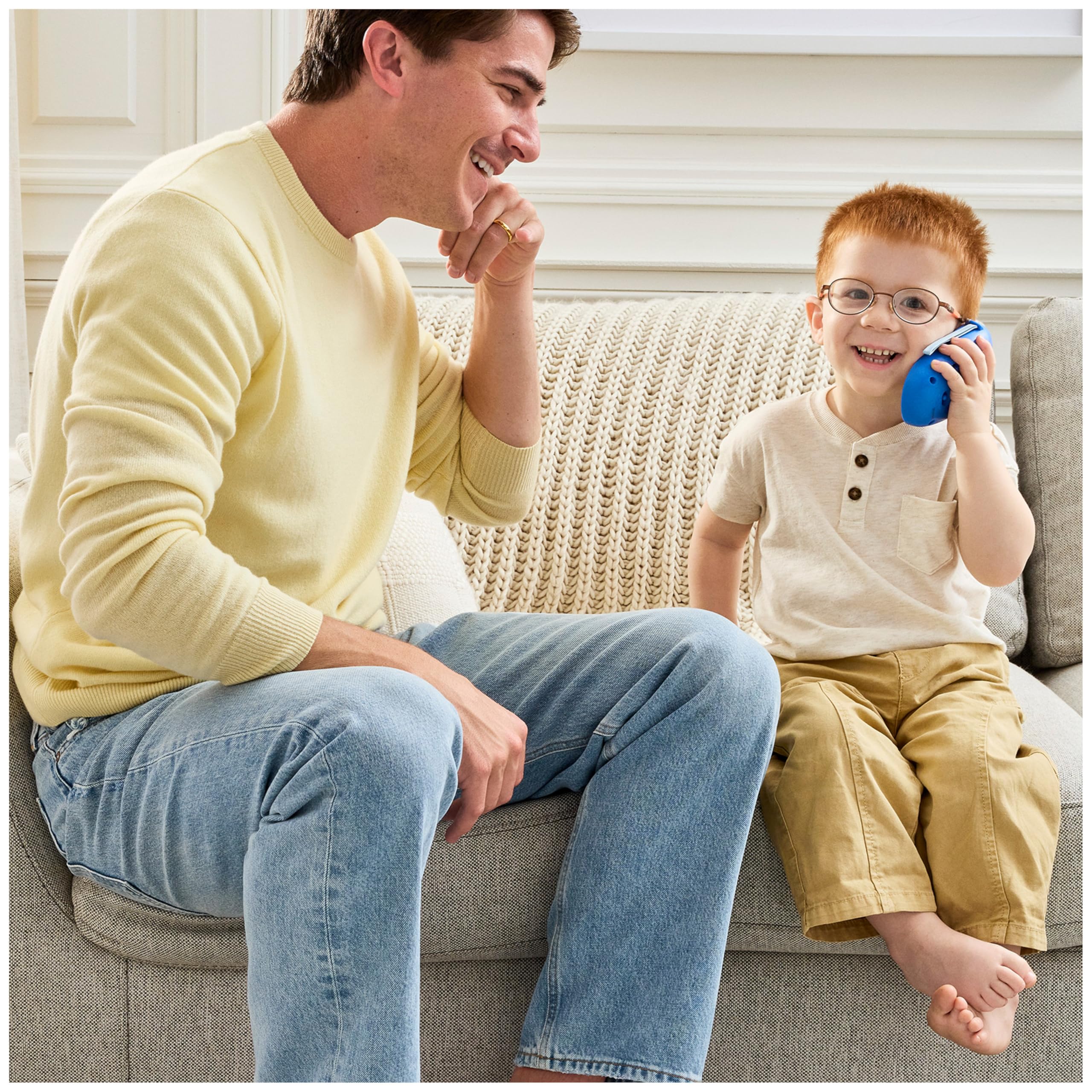 Help build littles verbal skills through pretend play with Ms. Rachel’s Talk with Me Learning Phone. This toy phone is designed to support developmental milestones like encouraging communication and socials skills. Made for little hands, this toddler phone is easy to grip and has 3 big buttons to press. Start, end and have conversations with Ms. Rachel as she greets you, asks questions, and ends conversations with a friendly tone. A volume control feature lets you switch between two volume levels (Batteries are included). With a crafted handle strap, play at home and on the go as part of your toddler travel toys and 2 year old toys This toy is designed by Ms. Rachel and developmental experts to support all children from 1 to 3 years old. These are ideal toddler toys, preschool toys, and toys for ages 2-4 along with Montessori toys. From 1 year old girl gifts to toys for 1 year old boys, these products help families learn, bond, and thrive. Ms. Rachel is a real teacher and passionate educator with two master’s degrees in education who supports learning for littles.