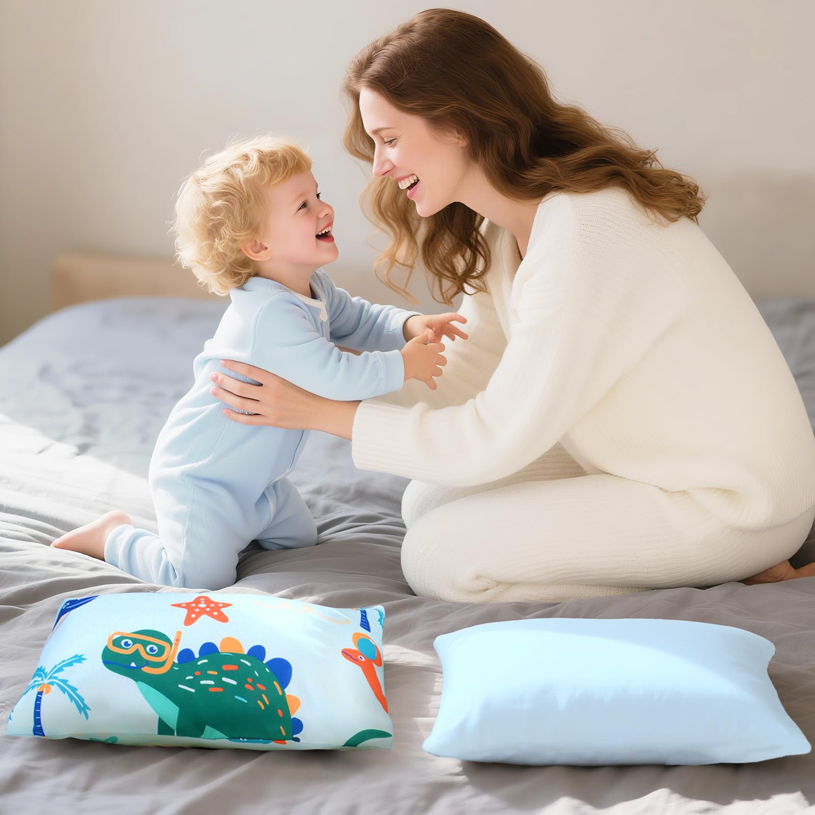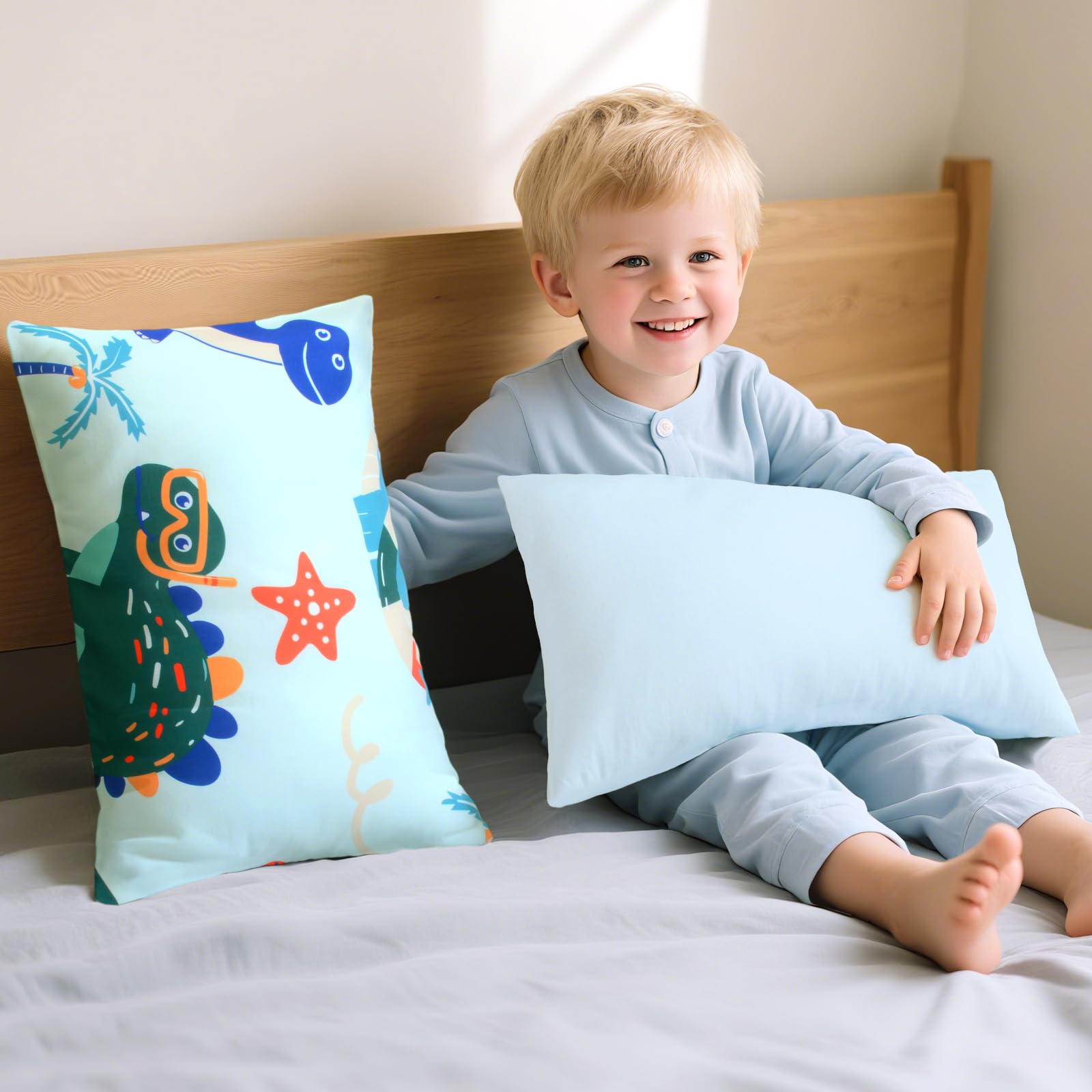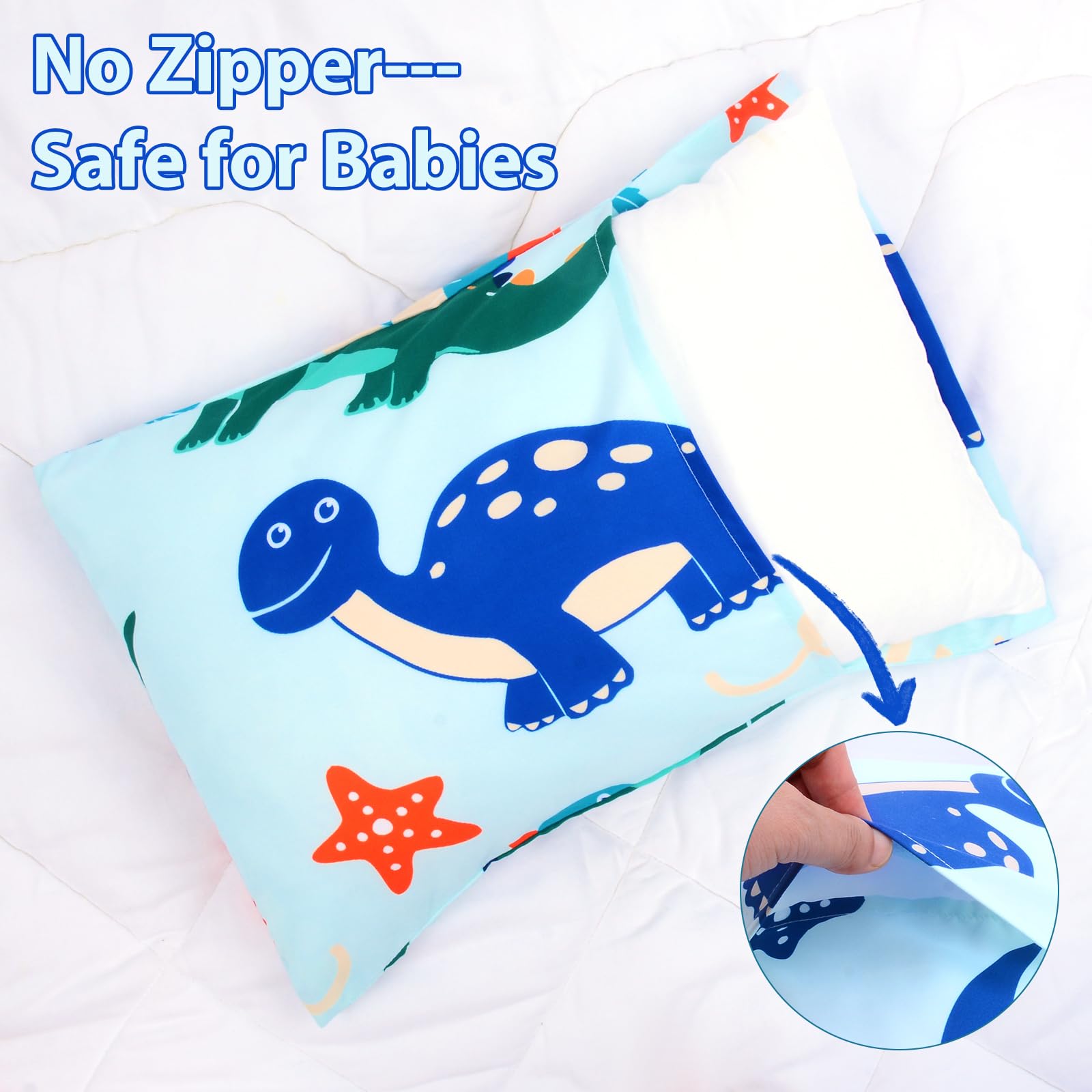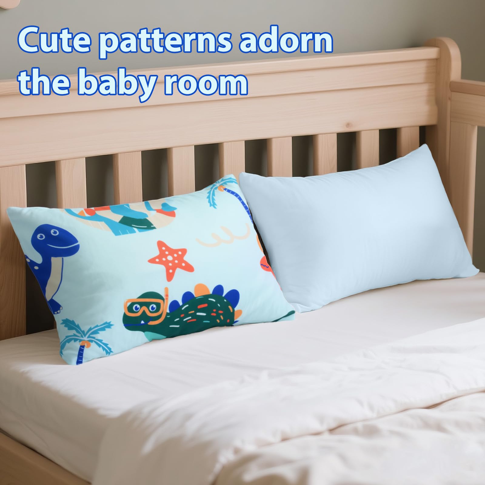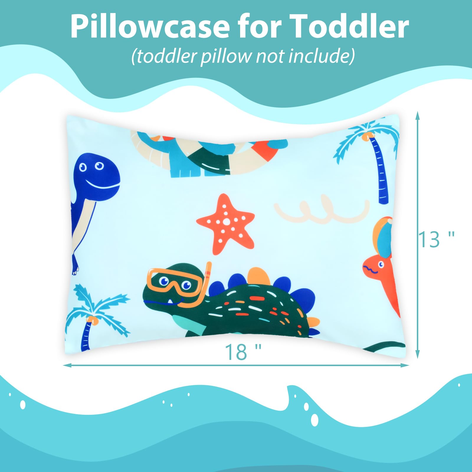 【TODDLER PILLOWCASE SIZE】:Dinosaur Toddler Pillowcases 13 x 18 inch for baby girls boys 2 pack (PILLOWS ARE NOT INCLUDED).100% polyester toddler Pillow Case breathable lightweight fabric, which is gentle to the touch and your baby's delicate skin.Fits toddler pillows sized 13x18,12 x 16, 14 x 19 inches.