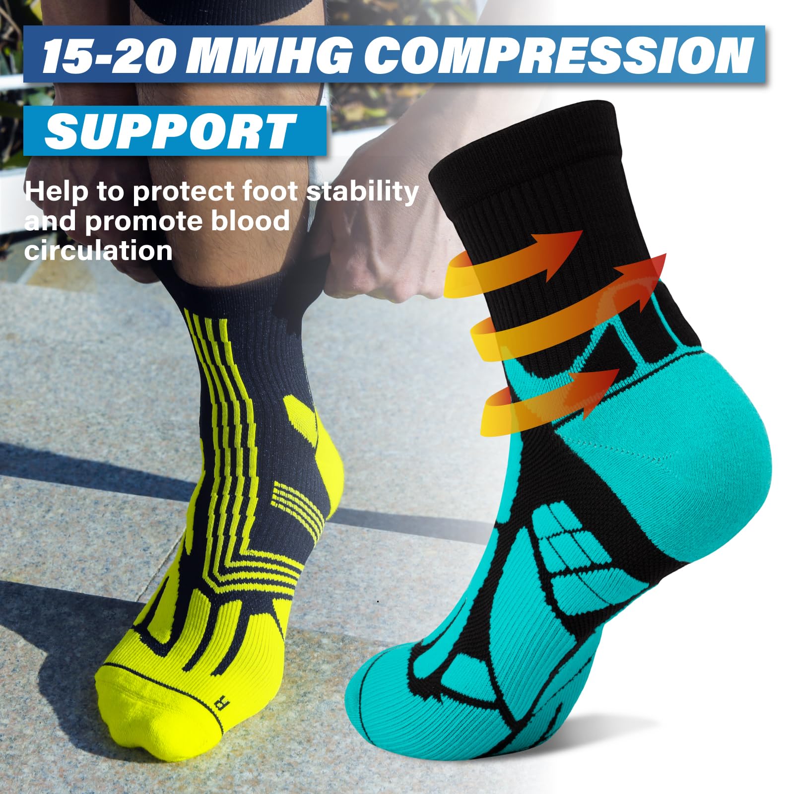 [No blister socks] Hand-linked seamless toe minimizes friction and exposure to blisters. Compression arch support keeps runners' arch stable and secure fit, prevent runner socks sliding from your daily walk, cycling, running, golf, tennis