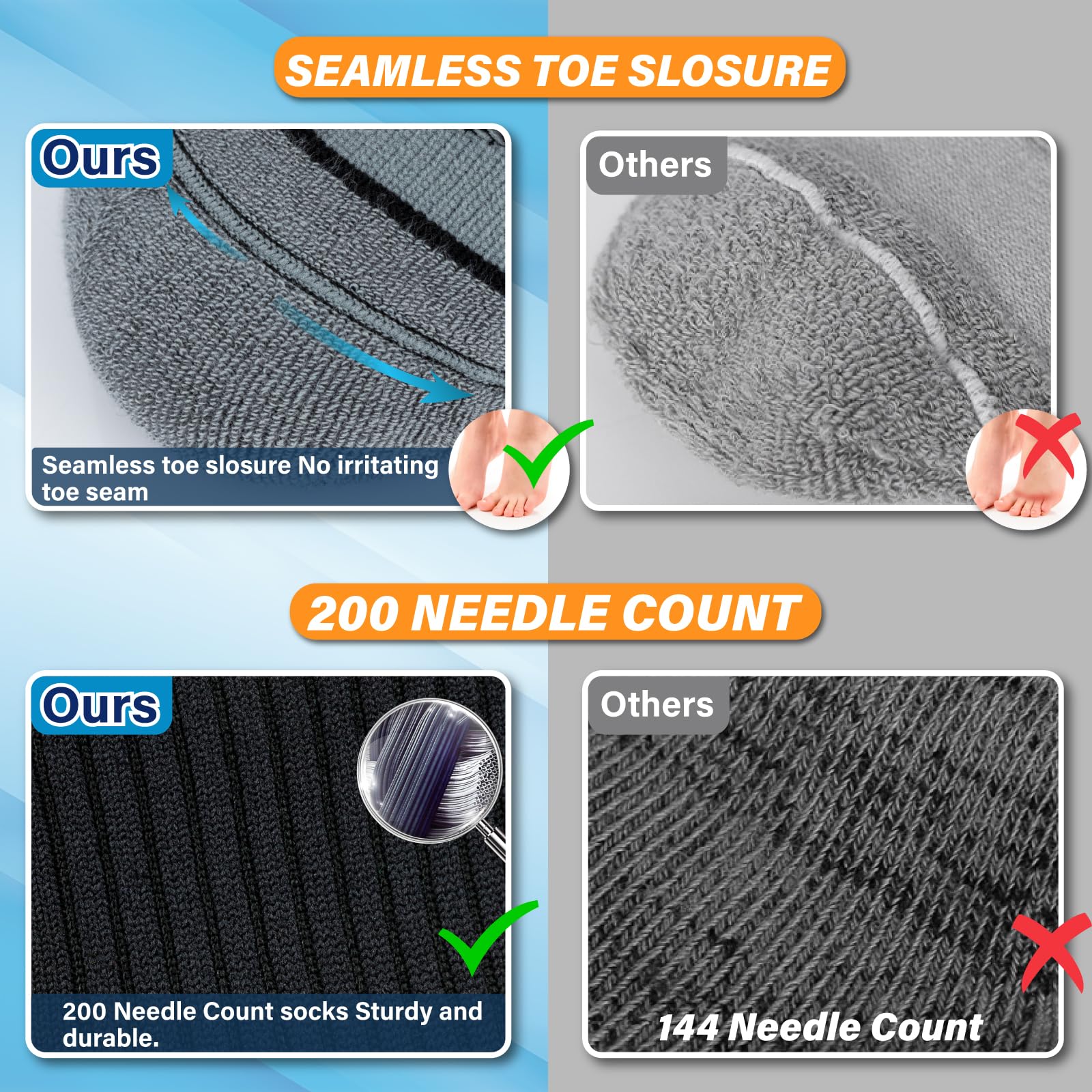 [200 needle count technology] The running socks for men and women uses professional high density 200 needle technology to knit. These socks achieve the highest levels of quality and durability. While others use 96, 144 needles, we use 219 needles technology. There are more stitches per inch than other ankle socks, which means a more comfortable, durable, great fitting sock with no added bulk