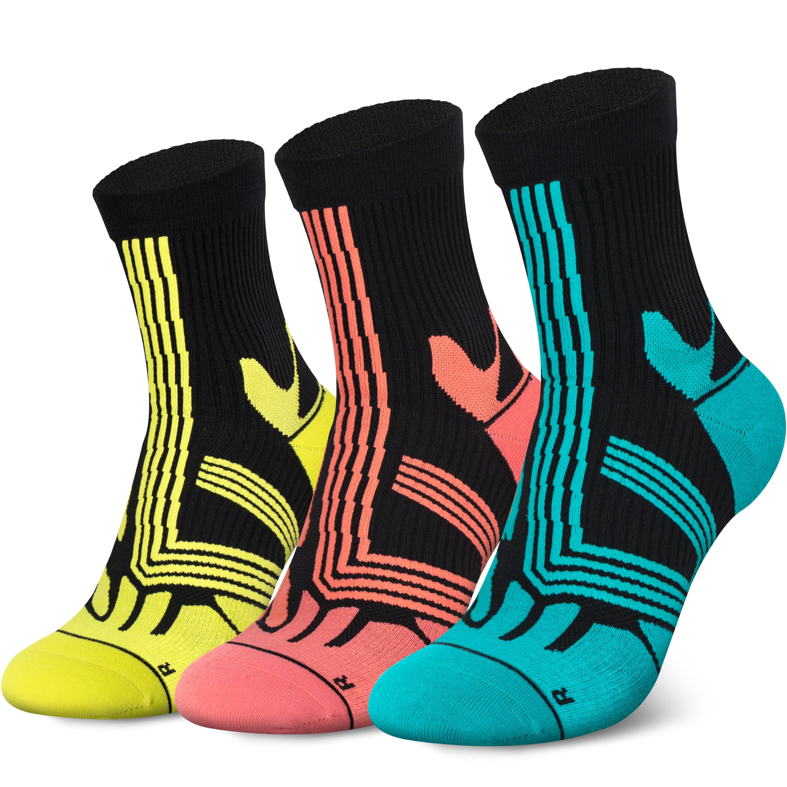 [Durable and breathable] The athletic socks are made from Lycra spandex and moisture-wick Nylon. The Lycra fabric features good tear resistance, stronger and more compression than other sport socks. The moisture wicks through the Nylon to a wider surface area for a greater evaporation rate, keeping your feet dry, breathable and odor-free longer