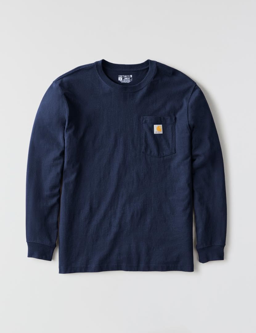Description Product Description Heavyweight, durable and casual. Holds up when you put it through the ringer day after day. From the Manufacturer Made of 6.75-ounce, 100% cotton jersey our long sleeve pocket t-shirt makes for perfect workwear layered or worn alone. It features a crew neck with a generous left chest pocket and side-seamed construction to minimize twisting. Ash fiber content is 99%/1% polyester. Heather gray fiber content is 90% cotton/10% polyester.