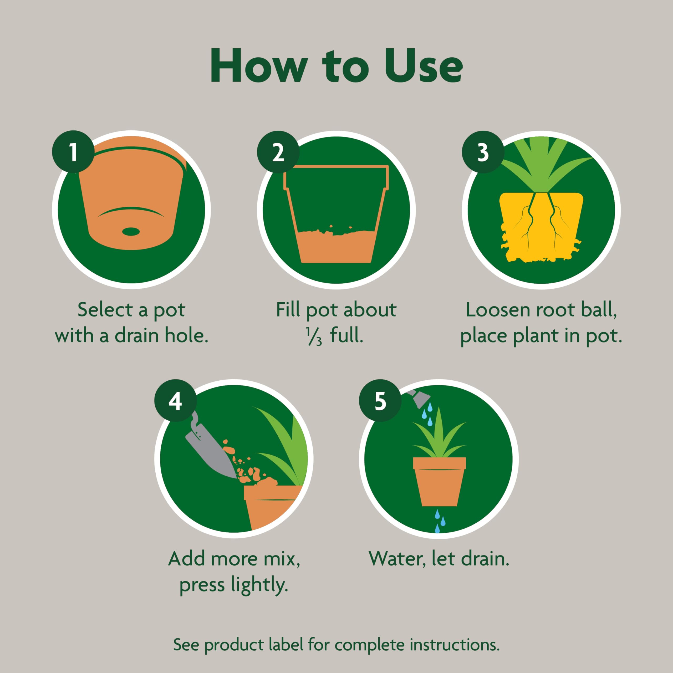 How to use: To use, fill a container about 1/3 full with potting mix; add more mix after placing your plant in the pot
