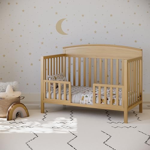 Bring your dream nursery to life with the Graco Benton 5-in-1 Convertible Crib. With its timeless design, the Benton is the perfect addition to any nursery. The Benton is crafted from pine wood, engineered wood, and wood composites, and its applied finish has been tested to meet or exceed the applicable ASTM and CPSIA safety standards. The Benton is GREENGUARD Gold Certified and JPMA Certified. The Benton includes an adjustable mattress support base with 4 height options [note, this crib may only be used until your child can easily climb out or is taller than 35 inches (89 cm)]. The Benton can be converted from a crib to a toddler bed [Graco Toddler Safety Guardrail Kit (Slats) (01340-60 Series) sold separately], daybed, and full-size bed with headboard and optional footboard (full-size bed conversion kit sold separately). The Benton fits any standard full-size crib & toddler mattress (mattress sold separately –Graco crib mattress recommended). Graco is the recipient of the PTPA Seal of Approval and 2021-2023 Women's Choice Award for 9 out of 10 Recommended Baby & Kids Furniture. Backed by a 1-year limited manufacturer’s warranty. Assembly required. Mattress, toddler safety guardrail kit, and full-size bed conversion kit each sold separately.