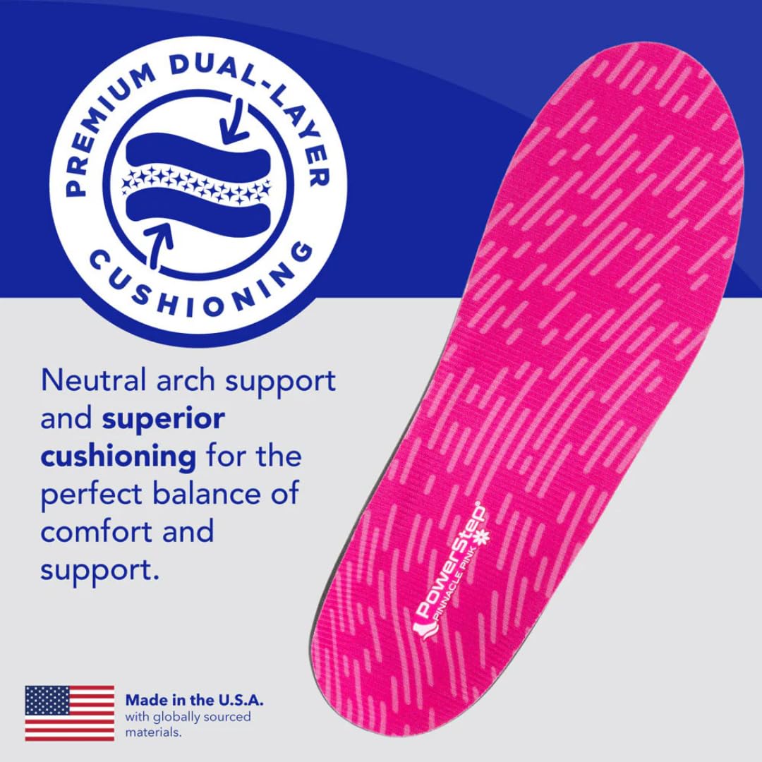 Powerstep Pinnacle Pink: Full Length orthotic inserts for women; Neutral Arch Support, Maximum Cushioning, Support inserts for most women's shoes