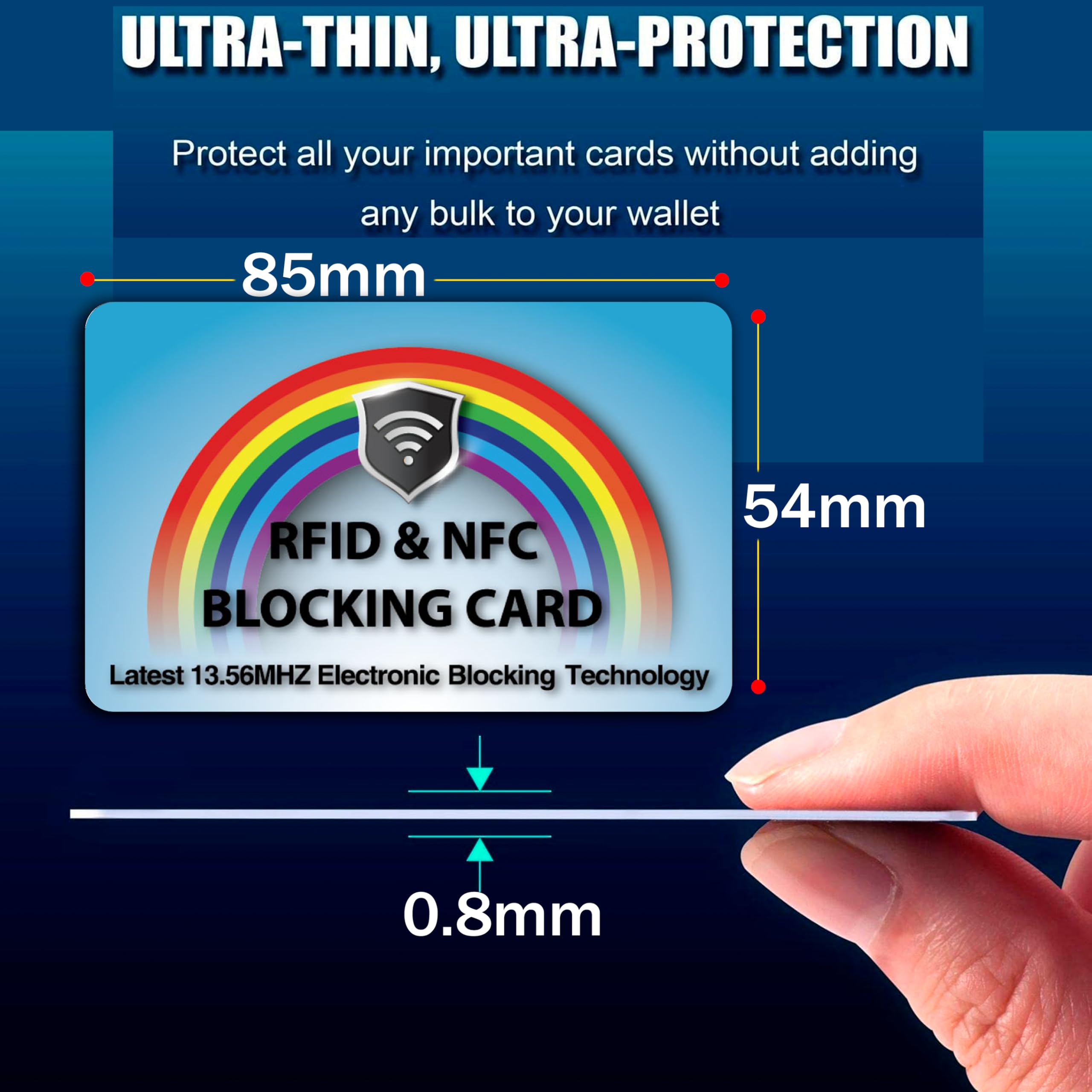 Wide Protection Range: Provides full coverage with an effective blocking distance of up to 2.4”, securing up to 1.2” on either side of cards from electronic pickpocketing.
