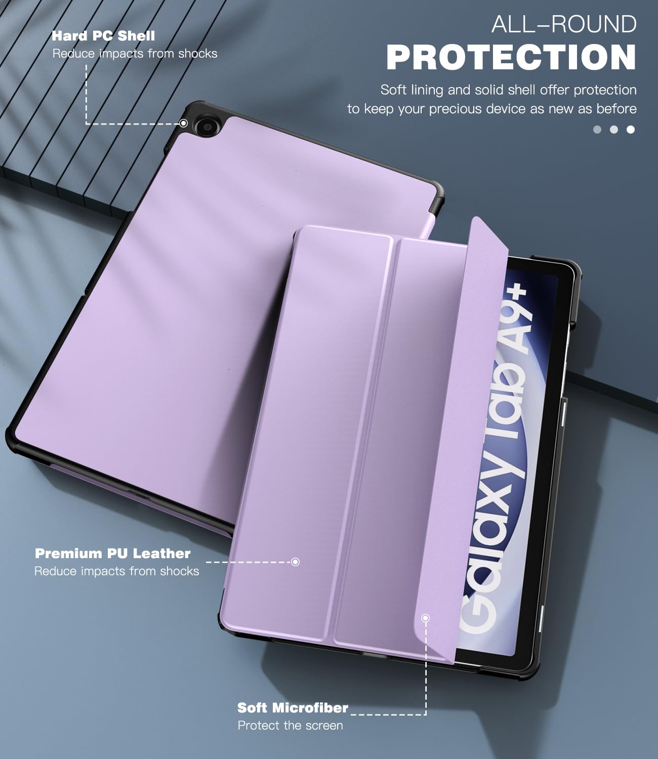 Premium Material: This Samsung A9 Plus Tablet Case is made of premium PU leather exterior, soft microfiber interior lining, and back hard PC cover design protect your tablet against the bumps and scratches of everyday life