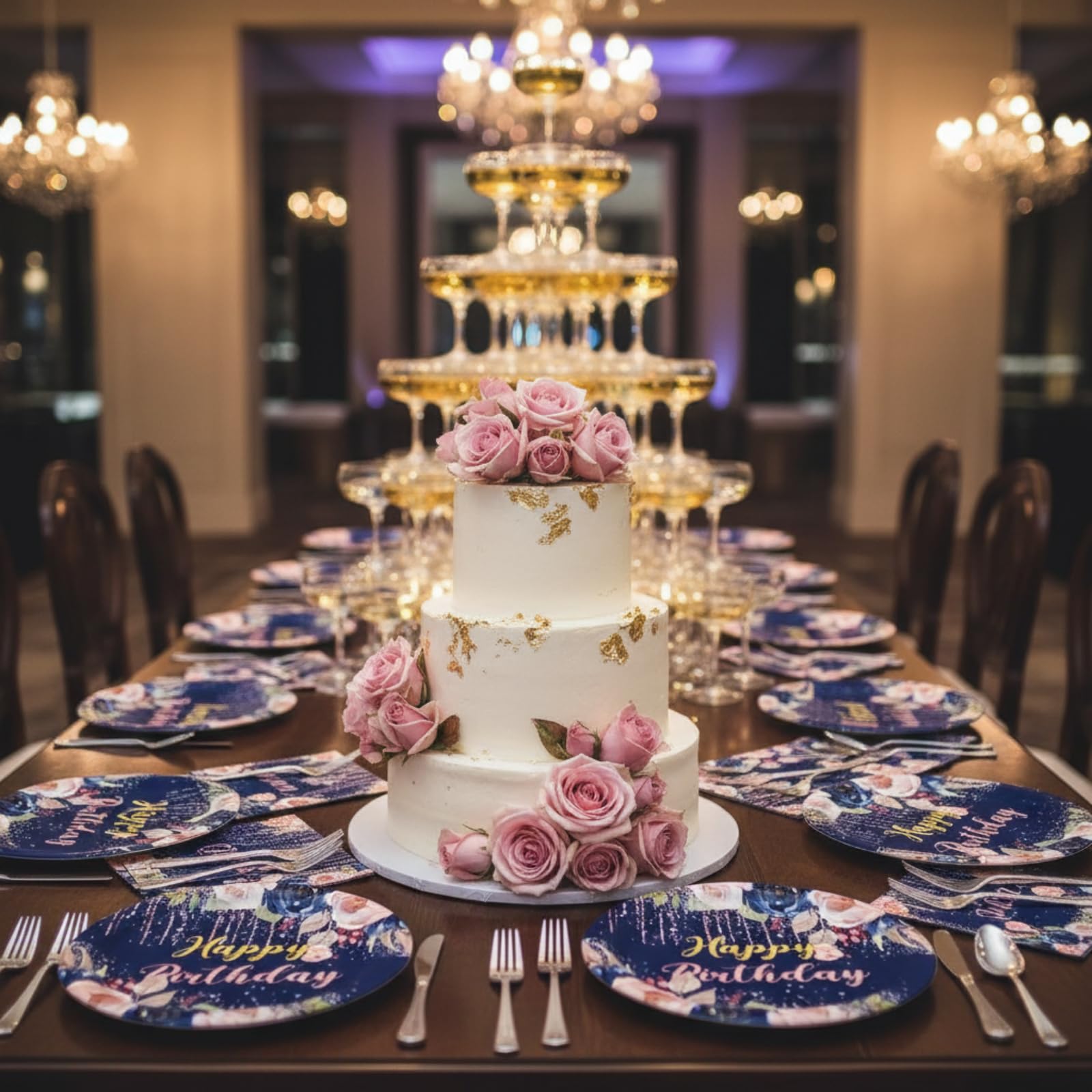 Perfect Party Supplies: This navy blue birthday tableware kits can serve 24 guests, enough quantity for navy blue rose gold theme party. It can be used for a variety of occasions such as birthday parties, school events, baby showers, etc.