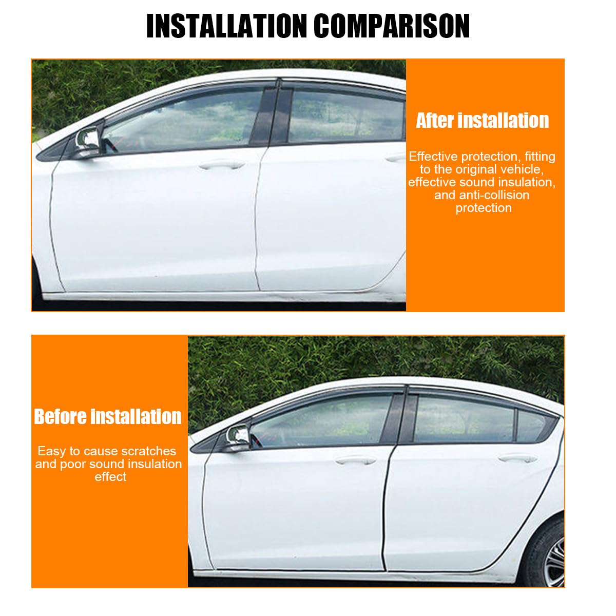Soundproof: This door rubber seal has good sound compression resistance, which can improve driving comfort when driving on the highway. The seal can effectively absorb and block different frequencies of noise from the outside world, thus reducing noise at highway speeds and making the journey more comfortable for you and your family.