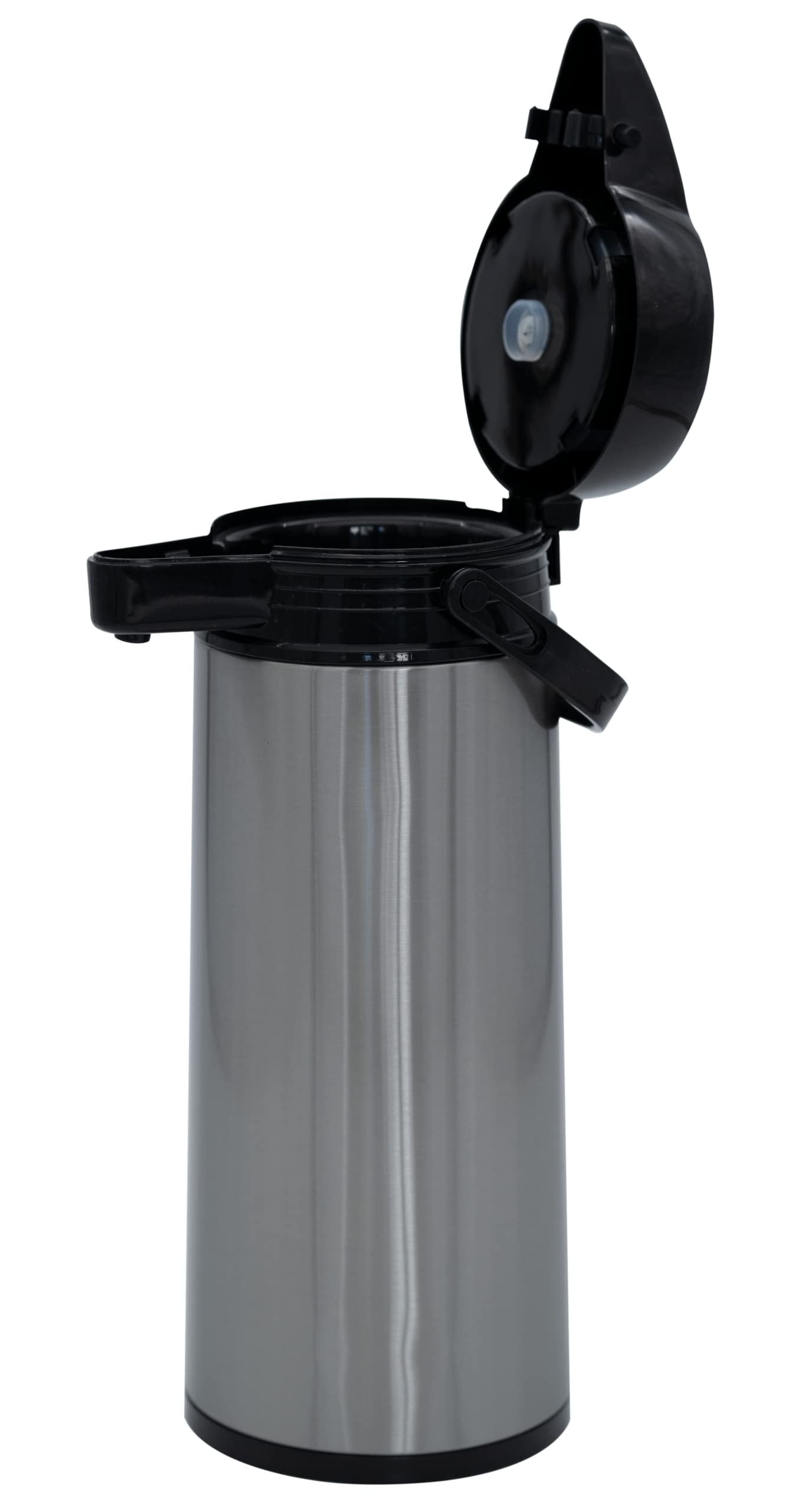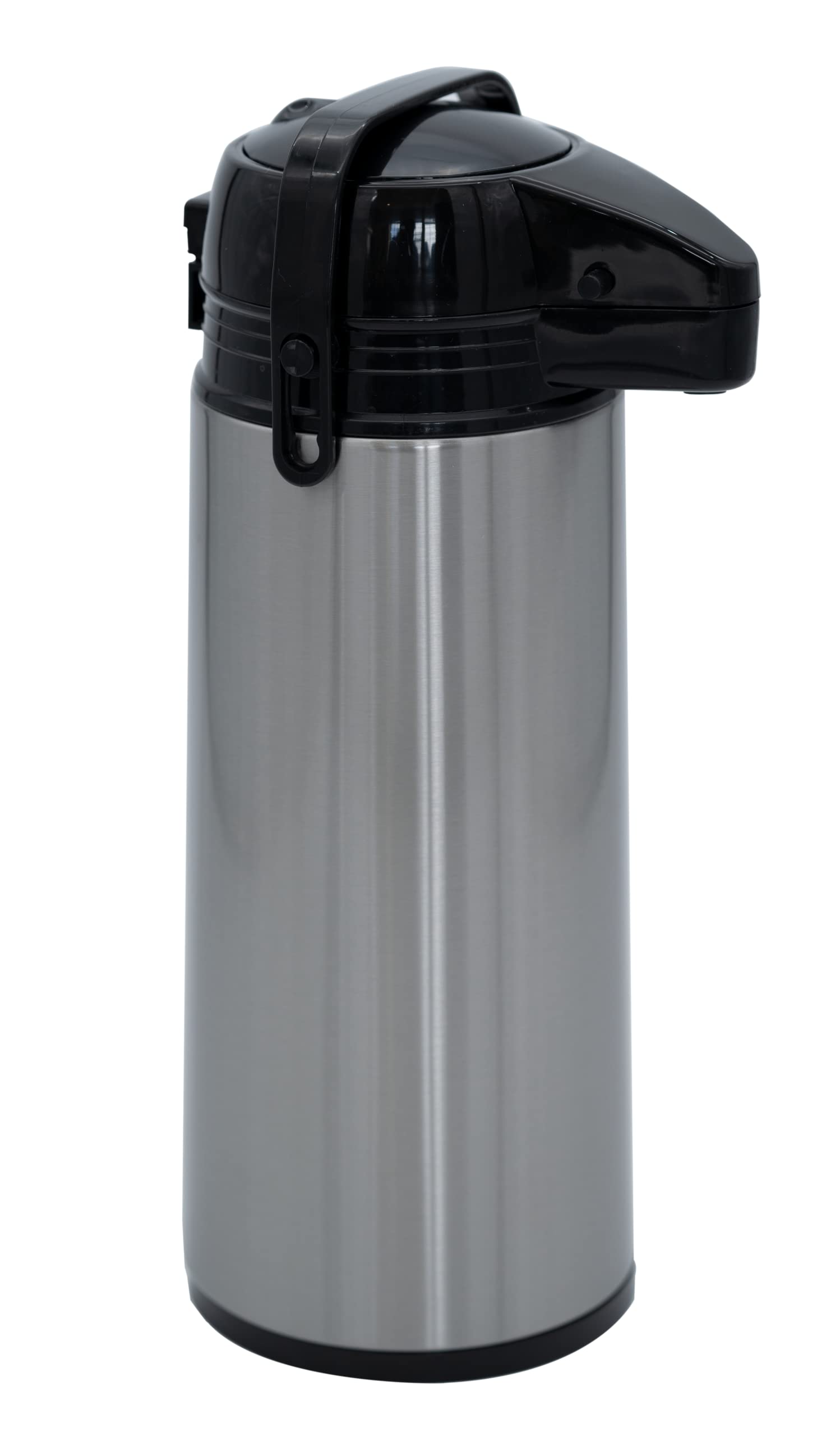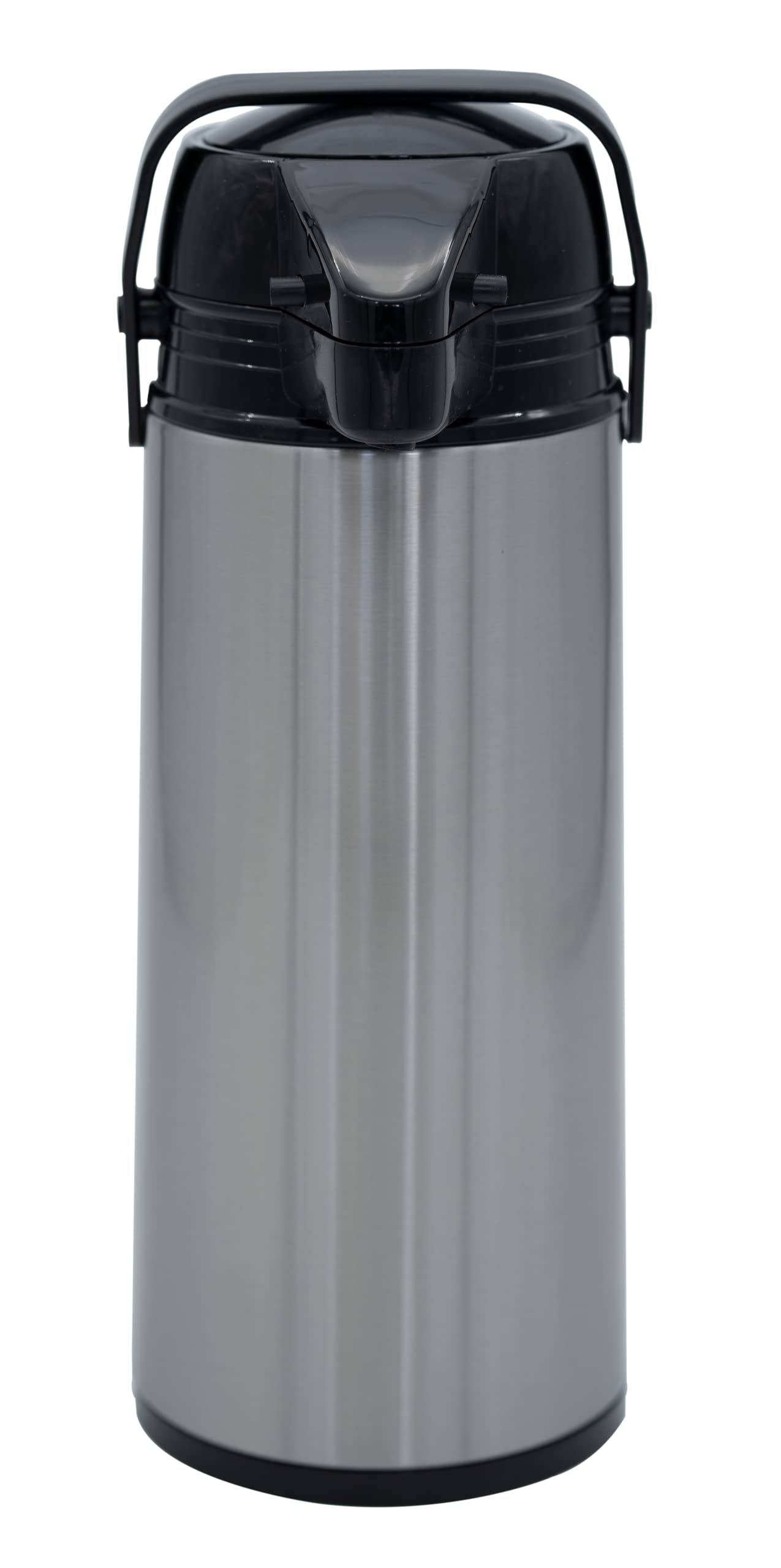 Airpot Coffee Dispenser with Easy Push Button | Stainless Steel | Double-Wall Vacuum Insulated Thermos | Effectively Keeps Beverages Hot or Cold