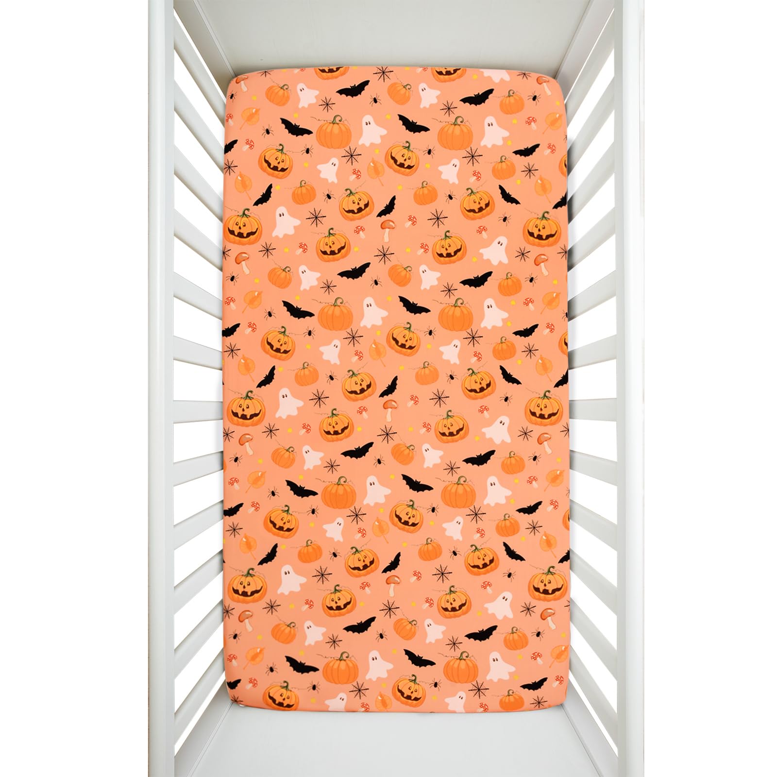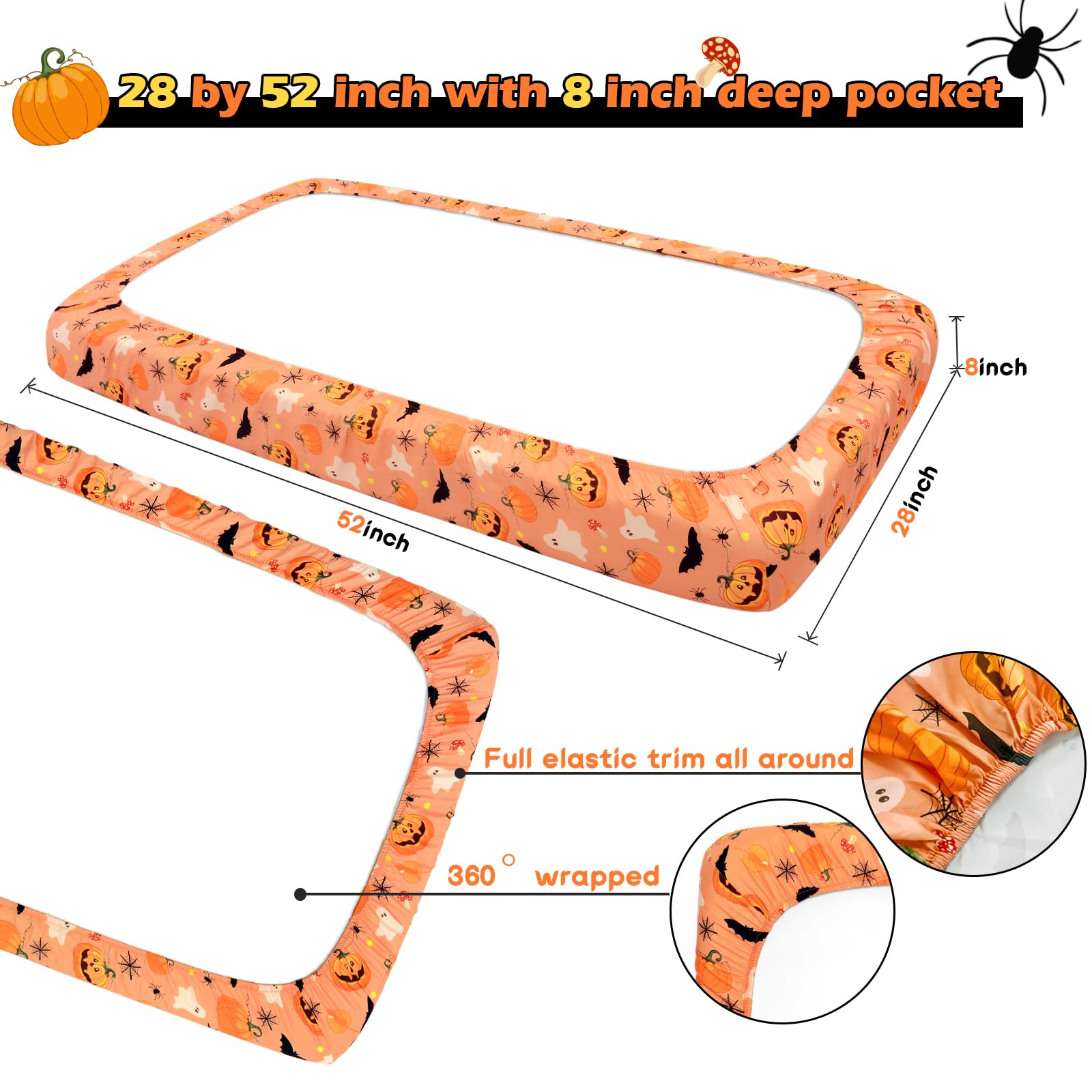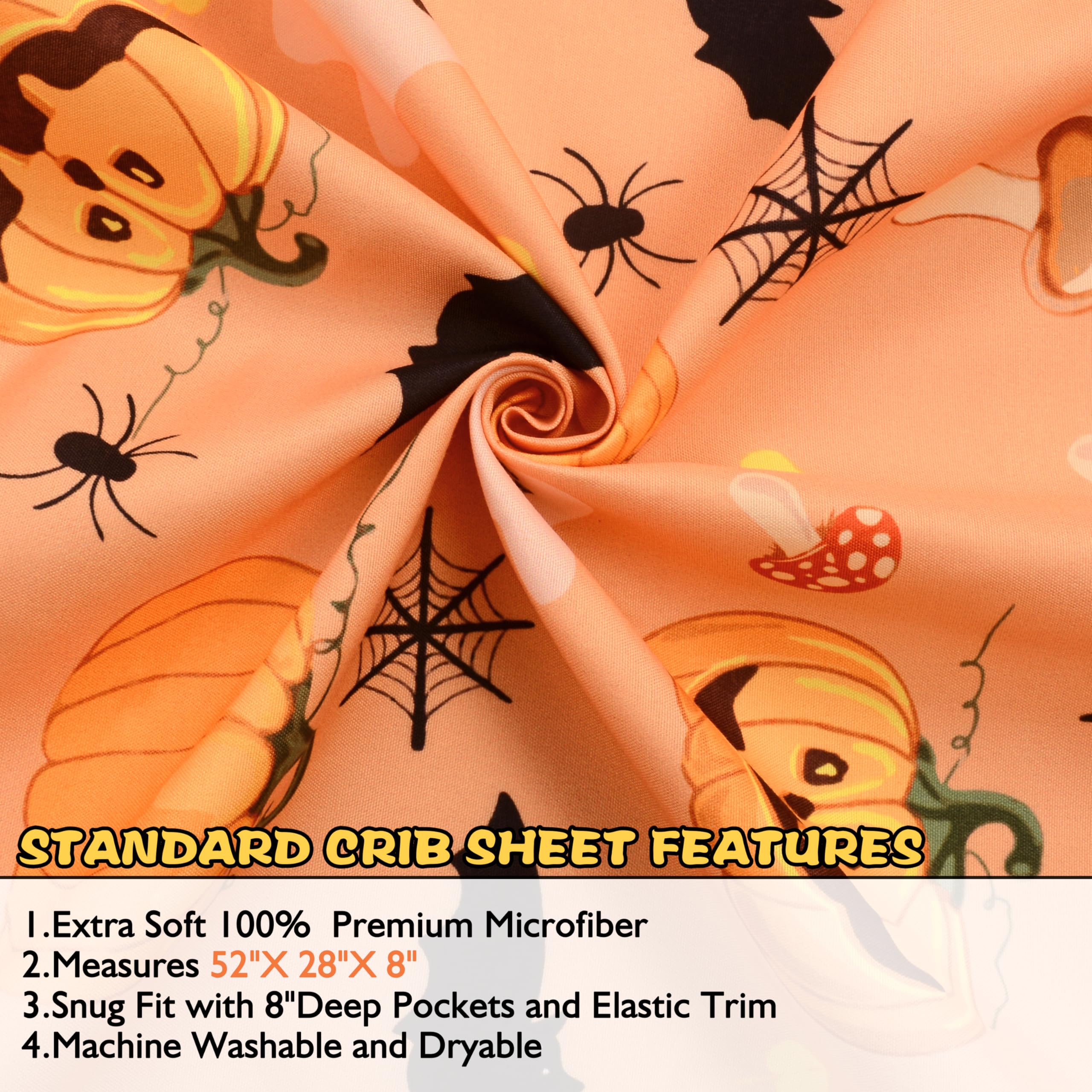 【Halloween-Theme Design】The Crib sheets contain elements such as ghosts, skeletons, bats, pumpkins, and spiders to create a Halloween atmosphere for the baby and let the little baby spend Halloween together!